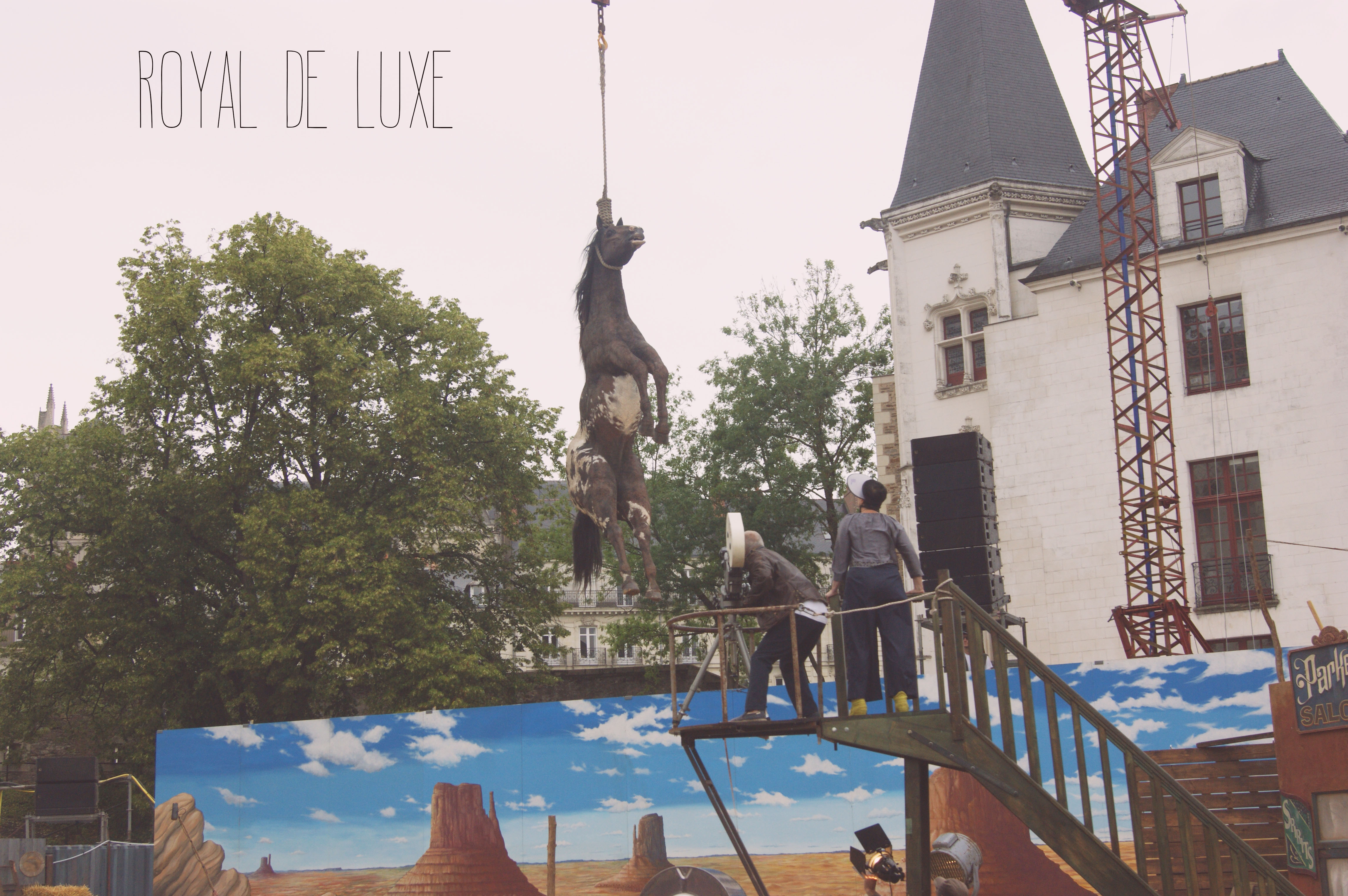 Le soir, nous avons pû assister à la première du spectacle (gratuit) de la compagnie de théâtre de rue Royal De Luxe. Un western situé quelque part entre le surréalisme, le burlesque et le réel.. avec un faux cheval plus vrai que nature, ce qui rendait certaines scènes assez dérangeantes. Malgré le mauvais temps, j’ai quand même apprécié le spectacle même s’il faut s’accrocher ;)