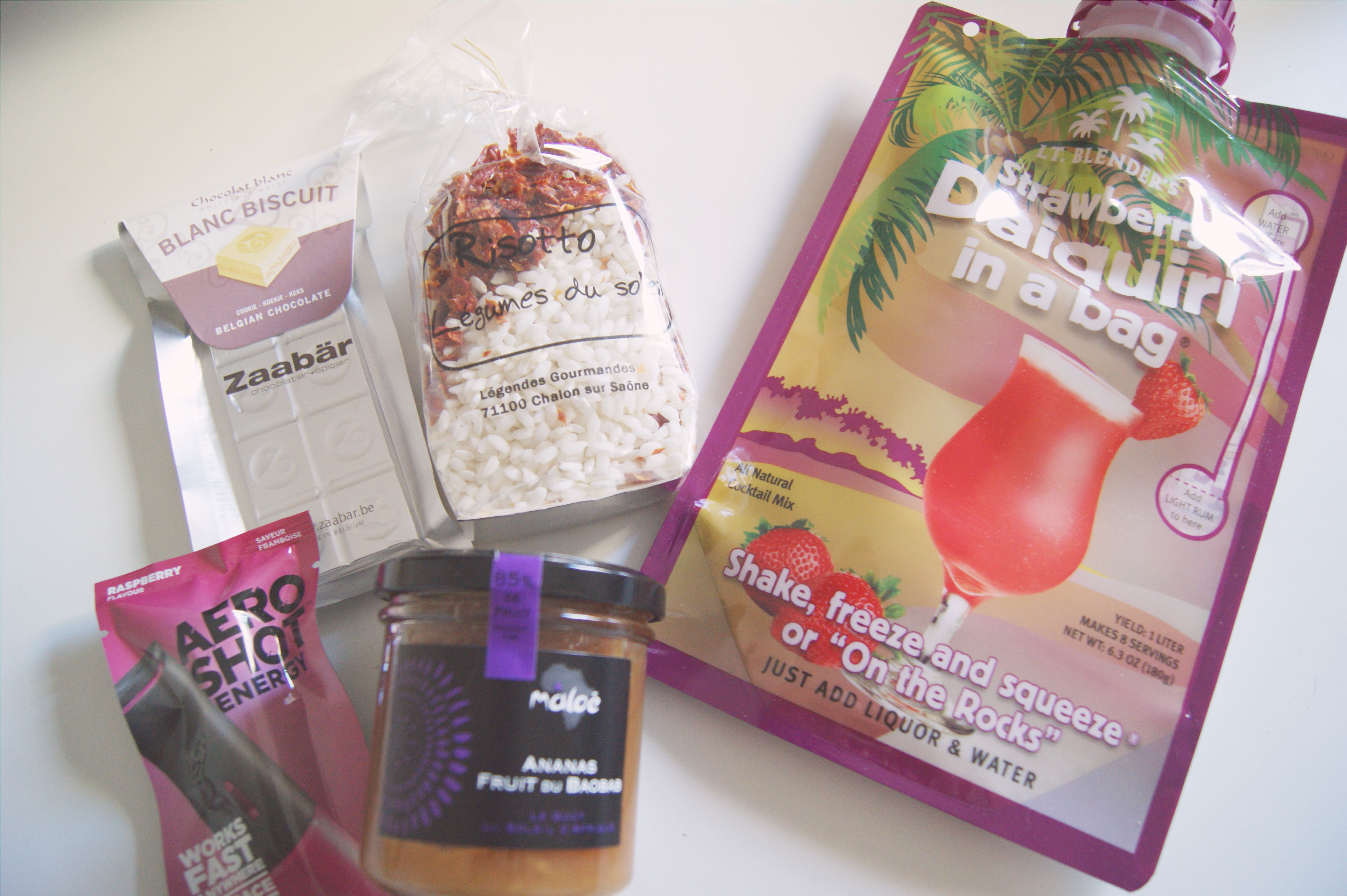 Du côté des produits, voici donc la surprise : il n’y en a vraiment aucun qui est dans la thématique de Noël ! Cependant, les fiches recettes sont là pour vous donner des idées, comme des sucettes de foie gras réalisés avec la confiture Ananas/Baobab, ou bien encore les tartelettes façon cheesecake au daïquiri fraise à servir au dessert, qui nous changerons de l’éternelle bûche au beurre affreuse (me dites pas que vous n’y avez jamais eu droit ^^). Une nouvelle fois, les produits sont faciles à utiliser, sympas et surtout j’ai bien hâte de me mettre à cuisiner ce petit risotto aux légumes du soleil qui me donne faim rien qu’en étant dans son sachet !