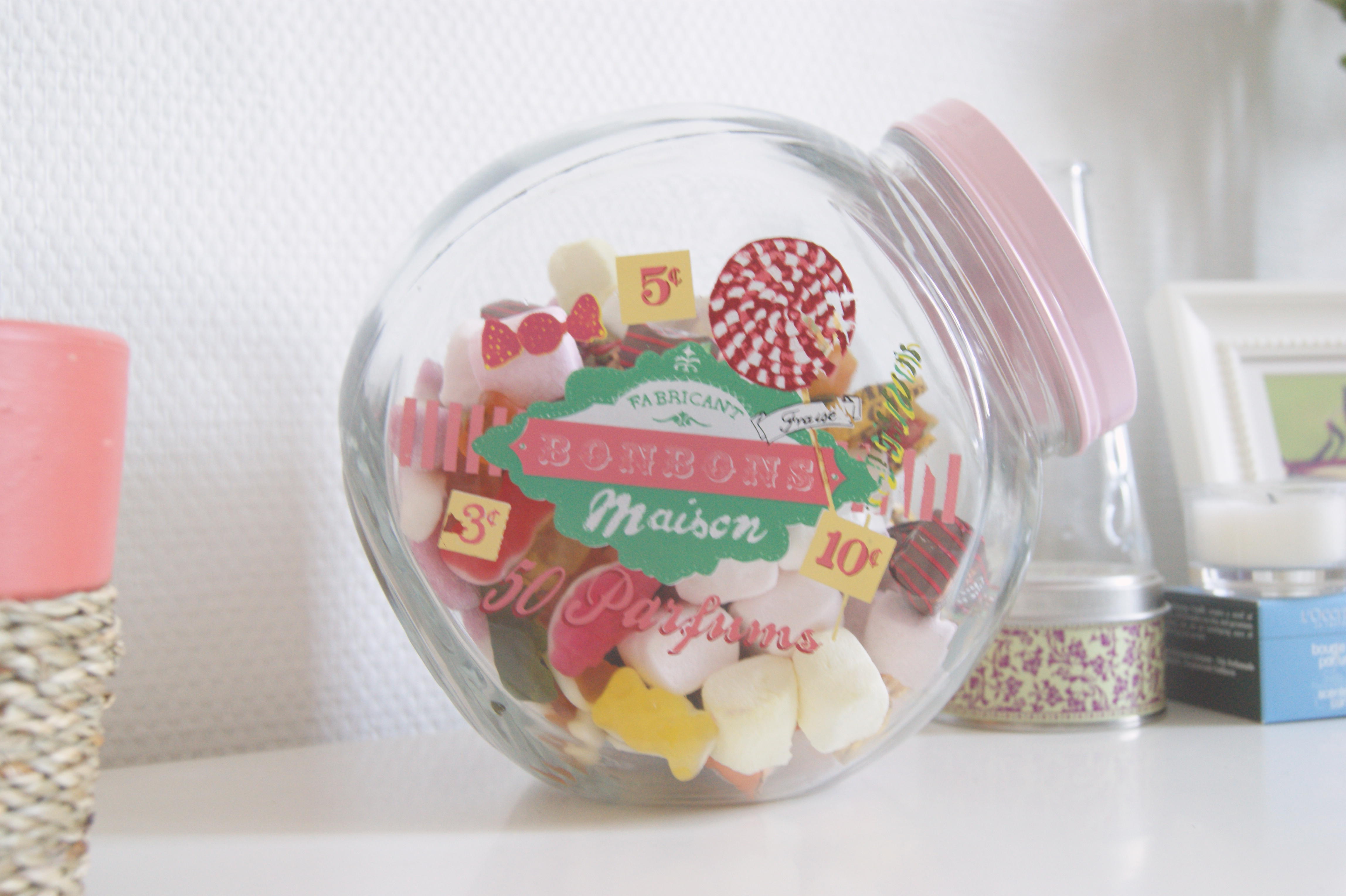 La bonbonnière est chouette, moi aussi, je compte faire une « collection » de bonbons dans mon futur appart. x)
