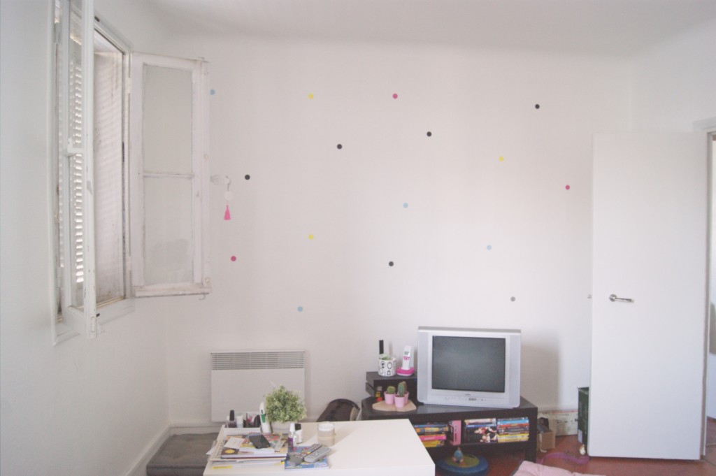 Les pois colorés sur le mur ça fait vraiment sympa!
