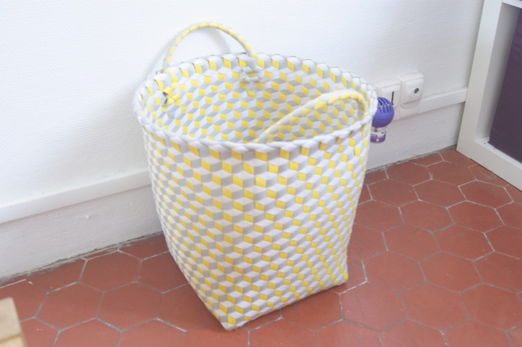 J’aime trop le panier tressé ! Idéal pour coller tous les magazines qui traînent dedans.