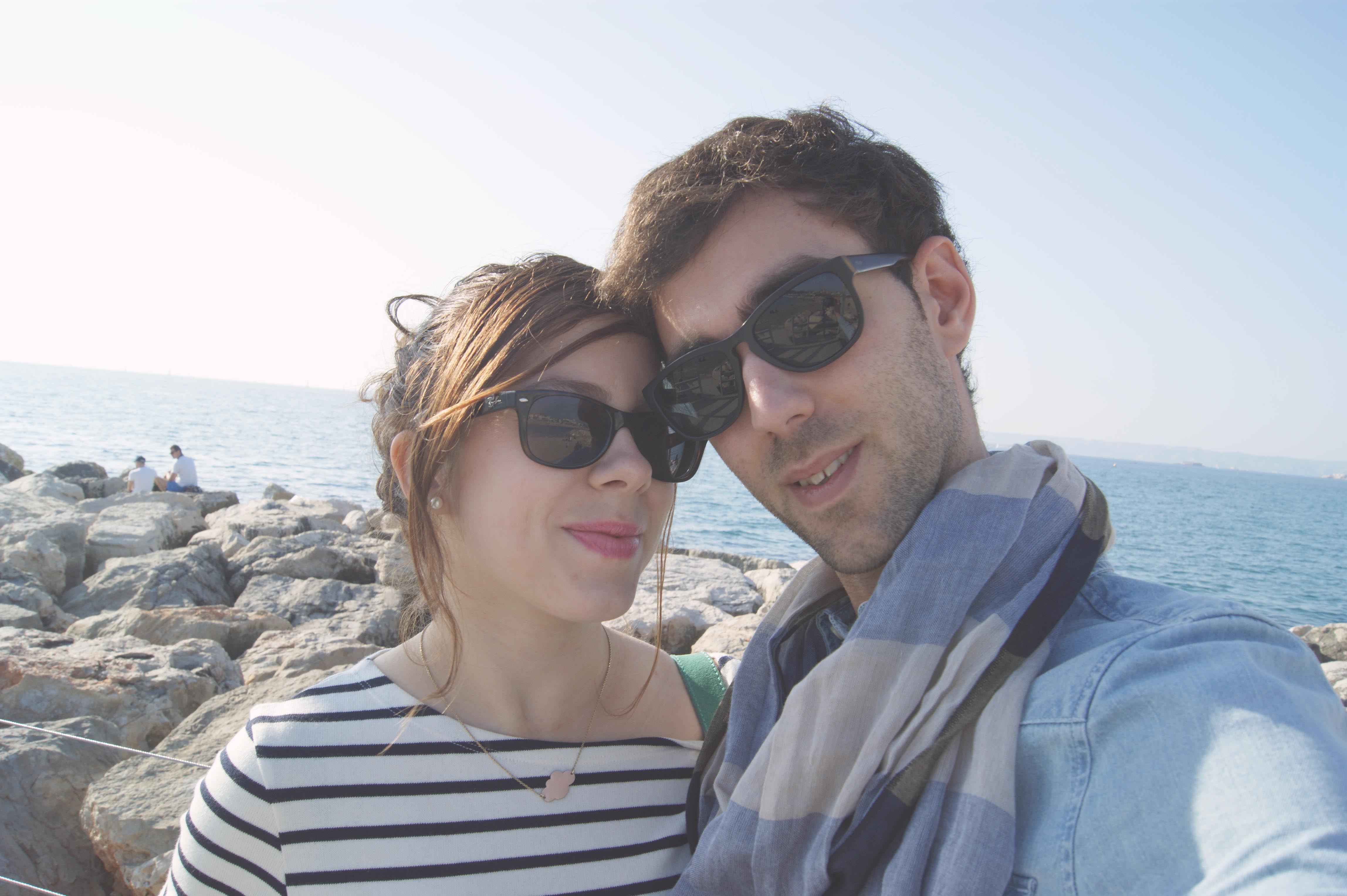 D’ailleurs, en parlant de Petit Bateau, j’ai vu la nouvelle collection et je suis à deux doigts de tout acheter, tellement la collection est canon ! Mais bon, ce ne serait pas raisonnable et en plus, j’ai d’autres achats de prévu, notamment pour mon appartement. Mais entre les marinières, les jupes et les shorts, je dois dire que ce printemps-été s’annonce marin, et ce n’est vraiment pas pour me déplaire ! Résultat, voici un nouveau look marin, avec en fond la Méditerranée et nos tenues à Monsieur et à moi assorties à tout ce bleu ;)