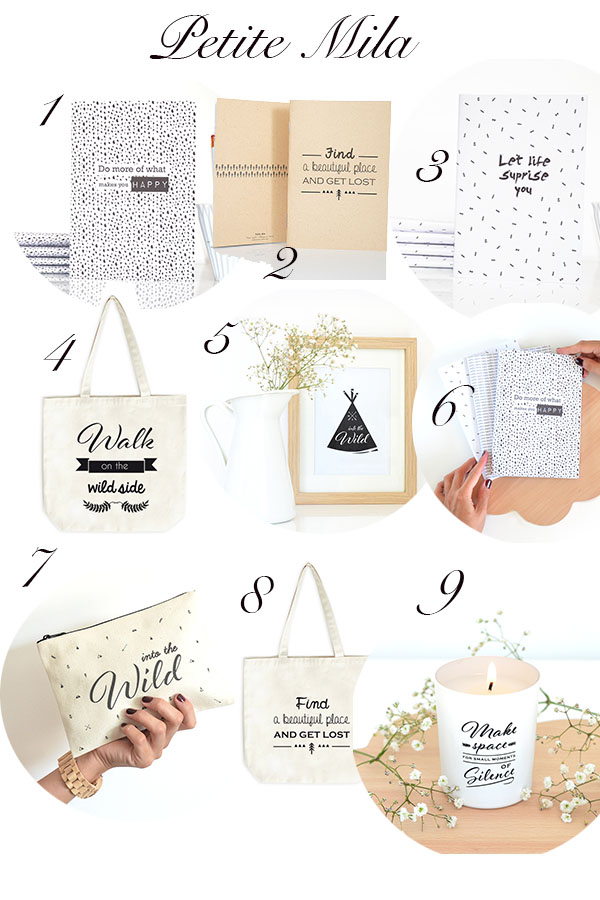 Alors que les autres collections de Petite Mila étaient axées autour d’objets comme des tote bags, des pochettes et des illustrations, pour cette nouvelle collection Caroline a sorti des cahiers, des carnets ainsi qu’une jolie bougie en complément de ses célèbres tote bags et pochettes.