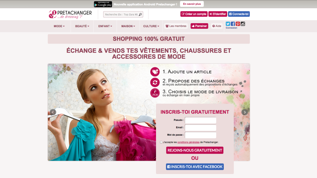 Pretachanger, c’est en fait un site de vente et de troc en ligne pour vider ses placards et faire de bonnes affaires. On peut y échanger et y vendre autant des vêtements, que des produits de beauté ou des livres. Mais la partie « MODE » est celle qui est le plus alimenté, et la plus intéressante quand on est une fashionista. Grâce à Pretachanger.fr, on peut refaire son dressing à moindre frais, puisqu’en profitant du système de troc, vous pouvez tout simplement vider et remplir votre dressing sans vous ruiner !