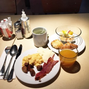 Après une bonne nuit passé dans le lit king size du Mama, on a profité du petit déjeuner gargantuesque ! Servi dans la salle de restaurant et le bar, qui ont une allure bien plus sage au petit matin, il est plutôt complet ! Oeufs brouillés, bacon, salade de fruits, pains, viennoiseries, fruits… Il y en a pour tous les goûts et c’est plutôt difficile de ne pas tout prendre ! ;)