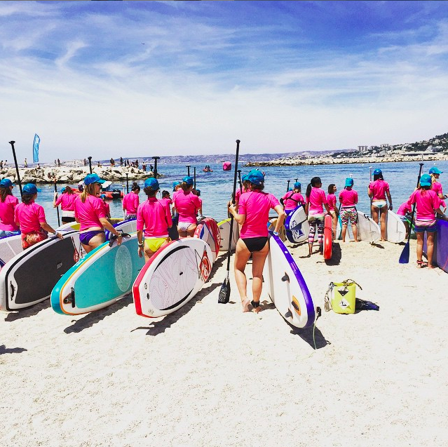 C’est comme ça que le 21 Juin dernier, à 8h30 du matin (ouch pour un dimanche…!), je suis partie passer une journée sportive entre filles du côté des plages du Prado. Au programme : initiation d’1h au yoga, puis cours de 5kms et cours de paddle yoga. Autant vous dire que j’étais à la fois stressée et excitée par le programme, malgré la chaleur et le soleil qui tapait super fort.