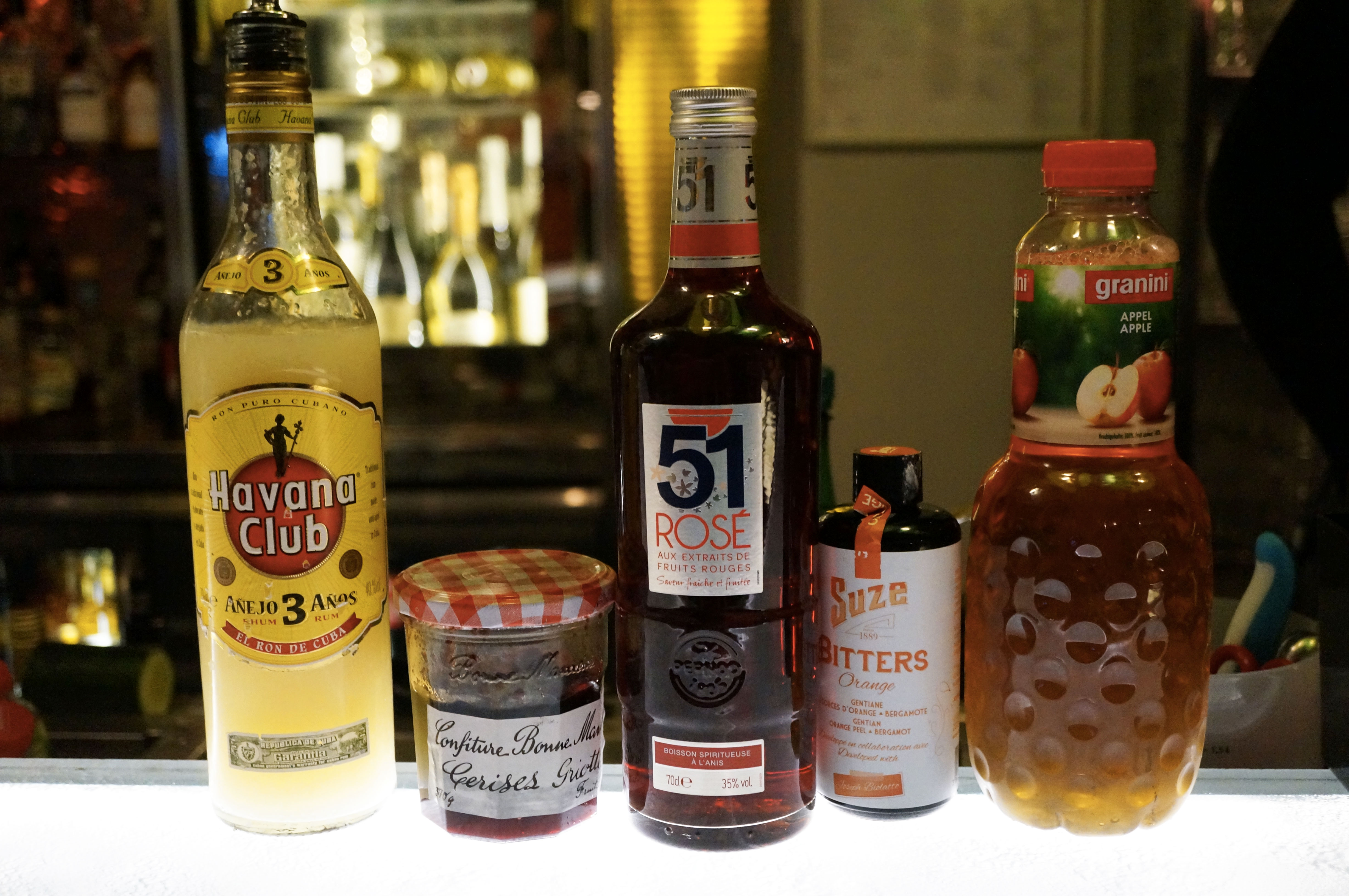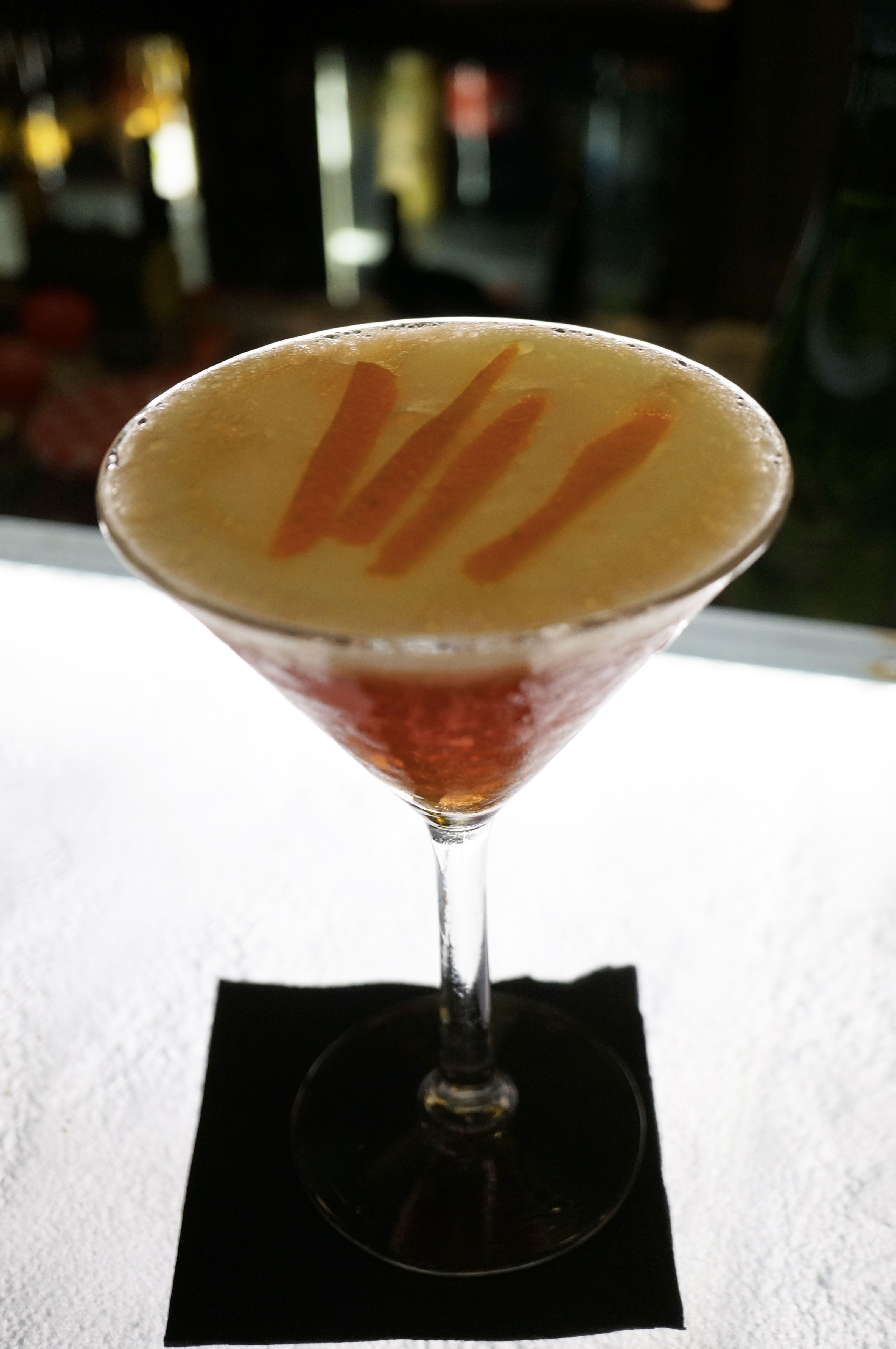 Le cocktail que j’ai le moins apprécié, notamment parce que je ne suis pas fan des Pim’s à l’orange, ni du cointreau. Le Pim’s est donc la version liquide de vos Pim’s du goûter, réalisé avec du rhum Sailor Jerry (un classique !) mais aussi du Cointreau, du sirop de chocolat et du jus de cranberry. Par contre ce cocktail est juste trop joli ! (12€)