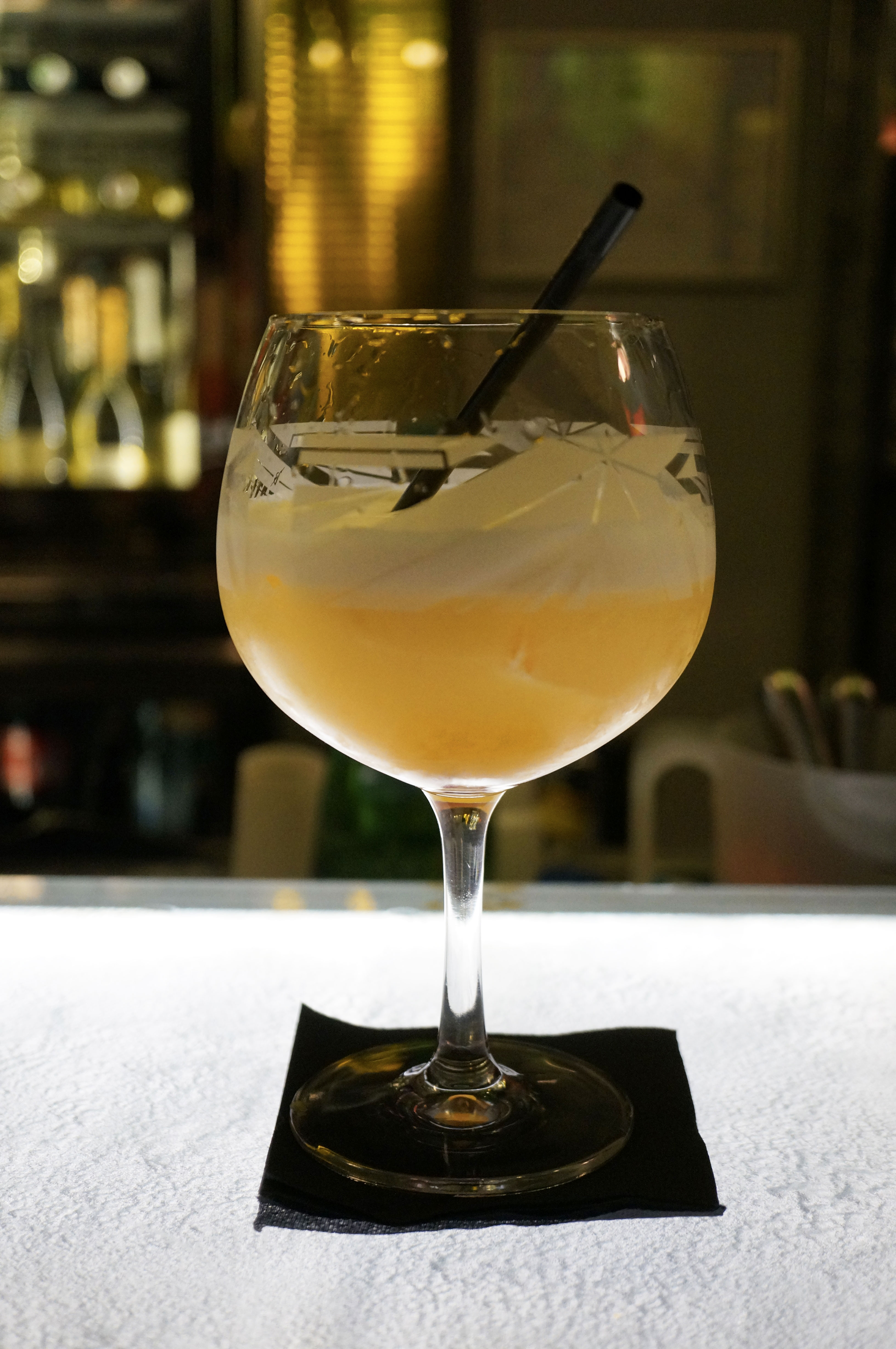 On termine avec le cocktail le plus surprenant de la carte, à mon avis : le Gin-To de la Mama. Ou l’association du Gin et du poivre, pour un cocktail à la fois rafraîchissant et piquant ! On retrouve donc dans son verre du Plymouth Gin, du St Germain, du Schweppes Premium à la Cardamone et du poivre frais. Et j’ai adoré, même si ça pique quand même pas mal ! (10€)