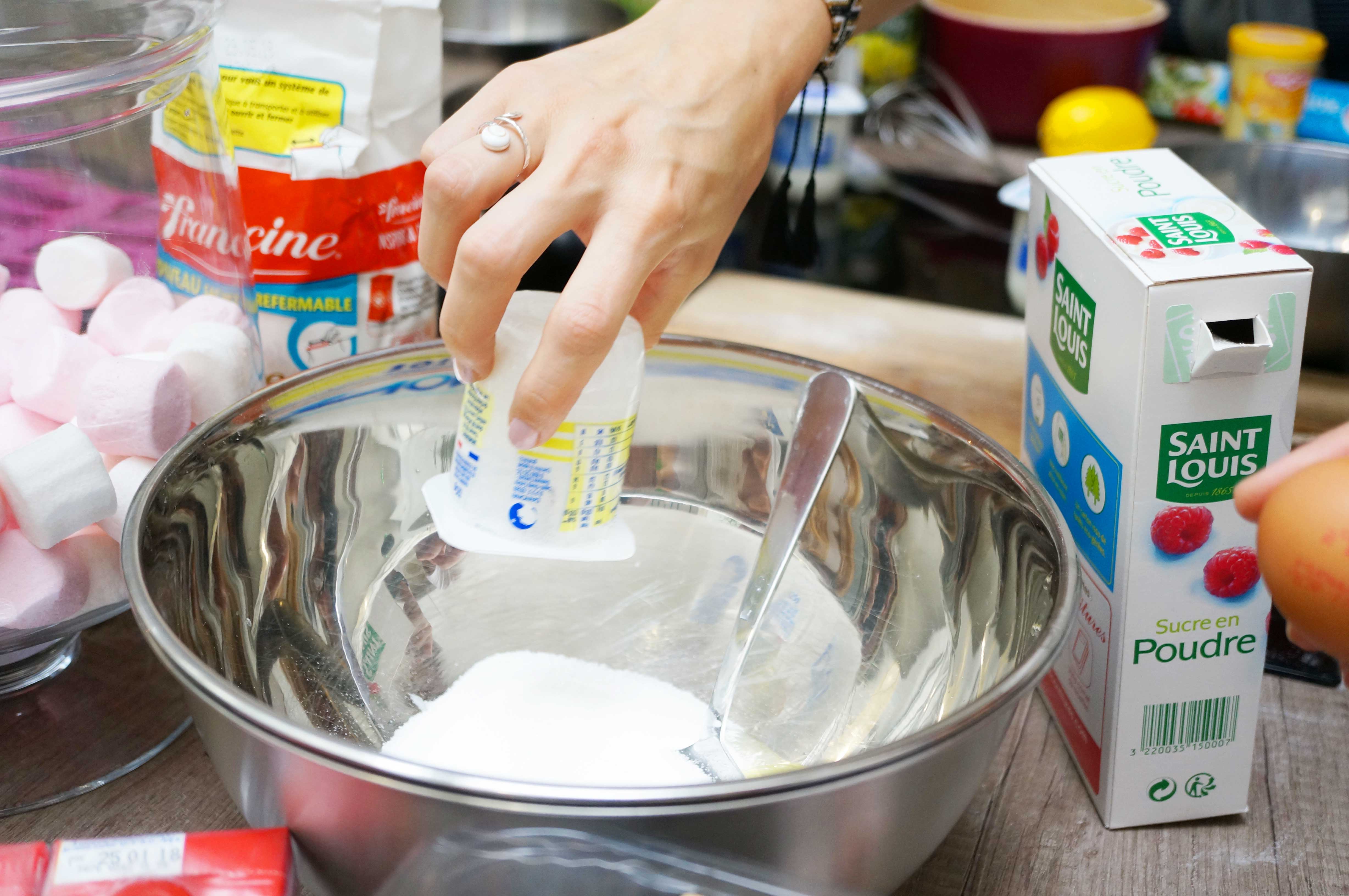 Ce qui tombe à pic puisque le but de cet atelier était de nous faire réaliser quelques recettes gourmandes avec pour ingrédient principal les yaourts 1919 ! Ceux-ci sont disponibles en magasin depuis cette semaine, et il y a plusieurs parfums : nature, vanille, citron et fleur d’oranger. Forcément, pas besoin de le deviner, mon parfum préféré est fleur d’oranger, ça me rappelle les navettes de Marseille ;)