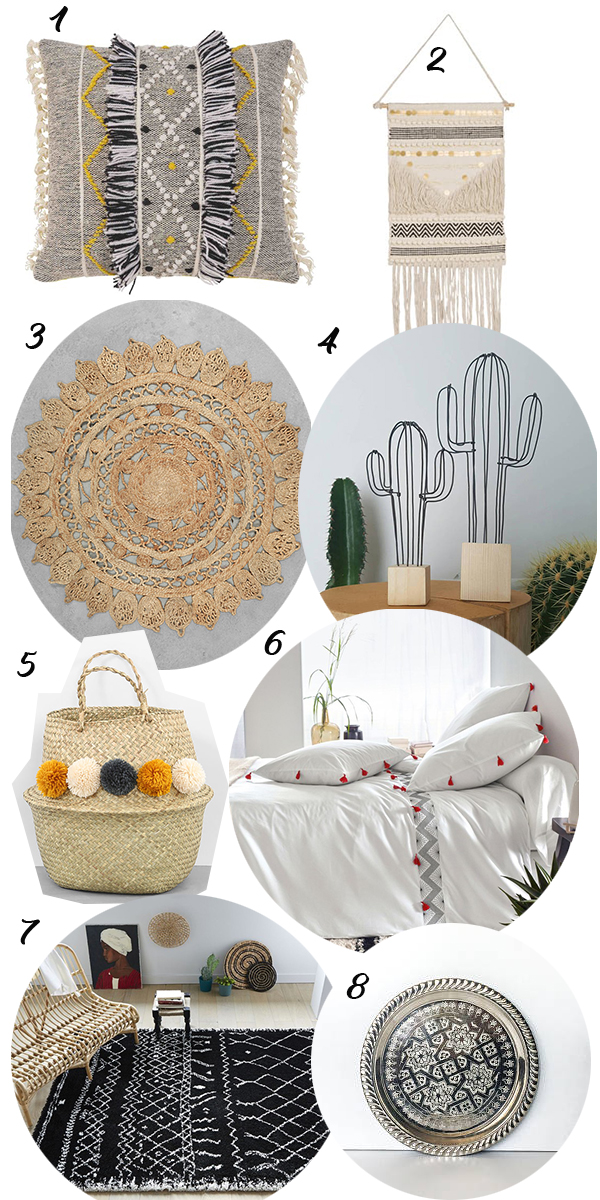 Par contre, le cuir, les imprimés berbères, le rotin et l’osier viennent agrémenter cette décoration, surtout sur la partie « objets de décoration ».