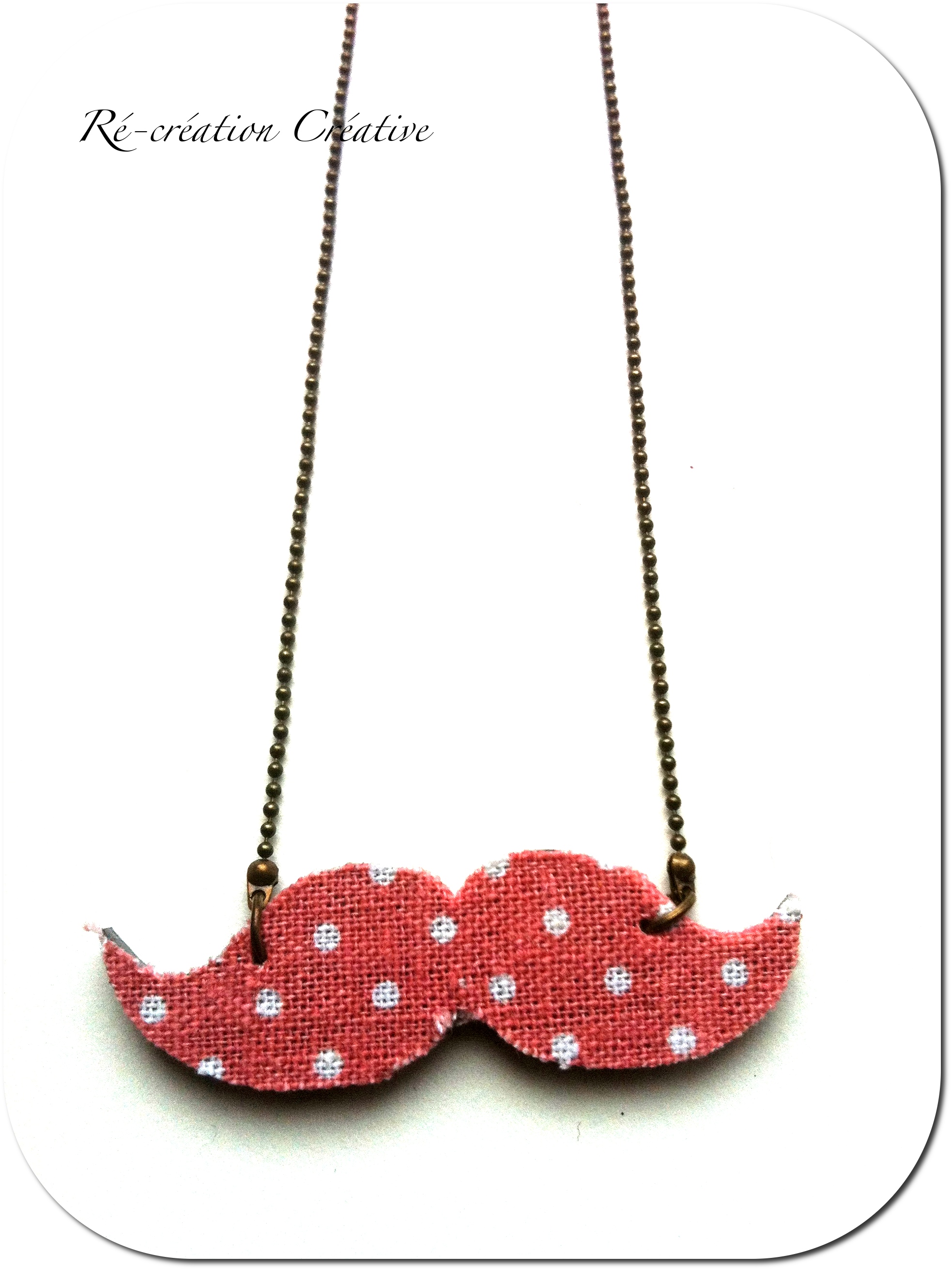 Et…….comme c’est bientôt Noël, on a décidé de vous faire un petit cadeau ! En effet, mon petit doigt me dit que vous craquez pour l’univers de Re-creation Créative et que vous ne saurez résister à l’idée de tenter votre chance pour gagner ce joli sautoir moustache, avec ses petits pois! Trop choupi !