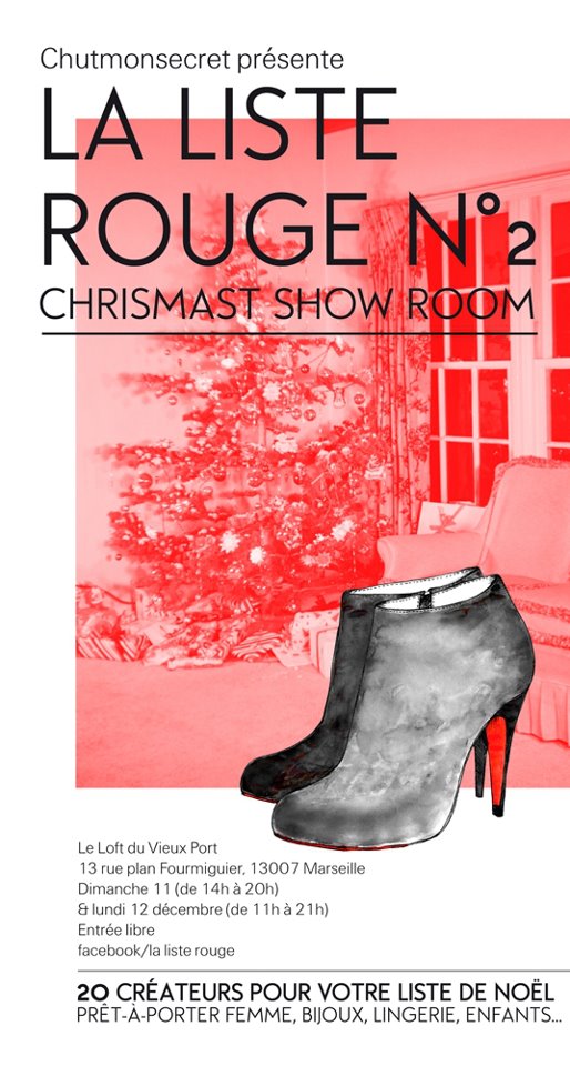 Les 11 et 12 Décembre derniers avait lieu à Marseille la deuxième édition de La Liste Rouge. Le concept? Un showroom de créateurs made in Marseille, le tout joyeusement orchestré par Elodie, plus connue sous le nom de Mlle Chut Mon Secret. Evidemment, je ne pouvais pas rater ça, surtout après avoir adoré la première édition qui avait eu lieu au mois de Décembre 2010 (oula, ça nous rajeunit pas !).