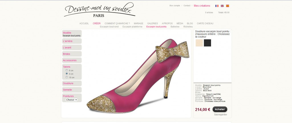 Jolie découverte pour les shoes addict, qui aimeraient bien porter des chaussures impossibles à trouver sur sa voisine de bureau : Dessine Moi un Soulier! Ce site vous permet de créer votre paire de chaussures de A à Z, en partant d’une base qu’on customise selon ses envies.