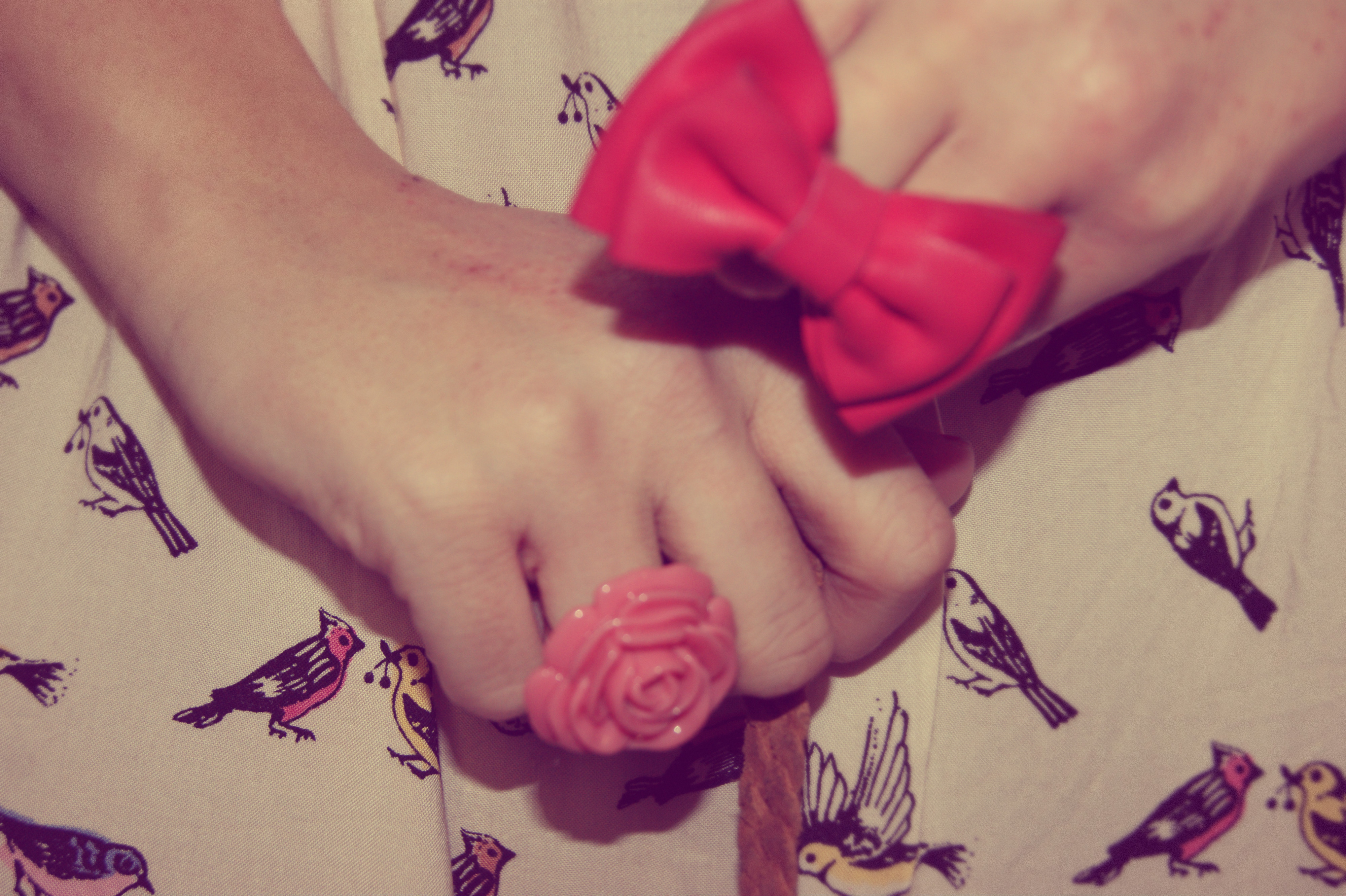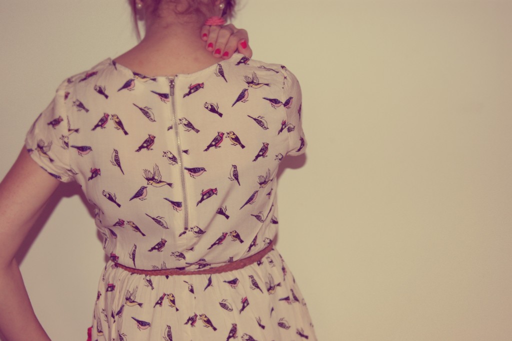 Oh! Trop belle cette robe oiseaux! J’adore avec la bague rose! So girly! <3