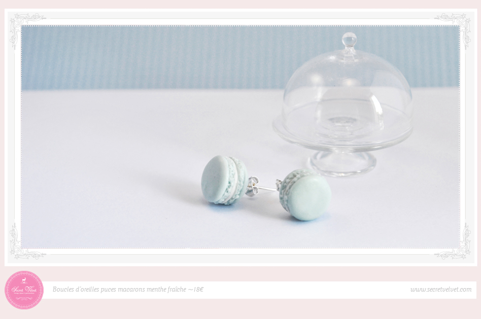 Une paire de puces d’oreilles macarons, non pas à la menthe mais à la pomme (qui seront donc vert pastel) ! J’en possède une paire et j’en suis folle ! ♡
