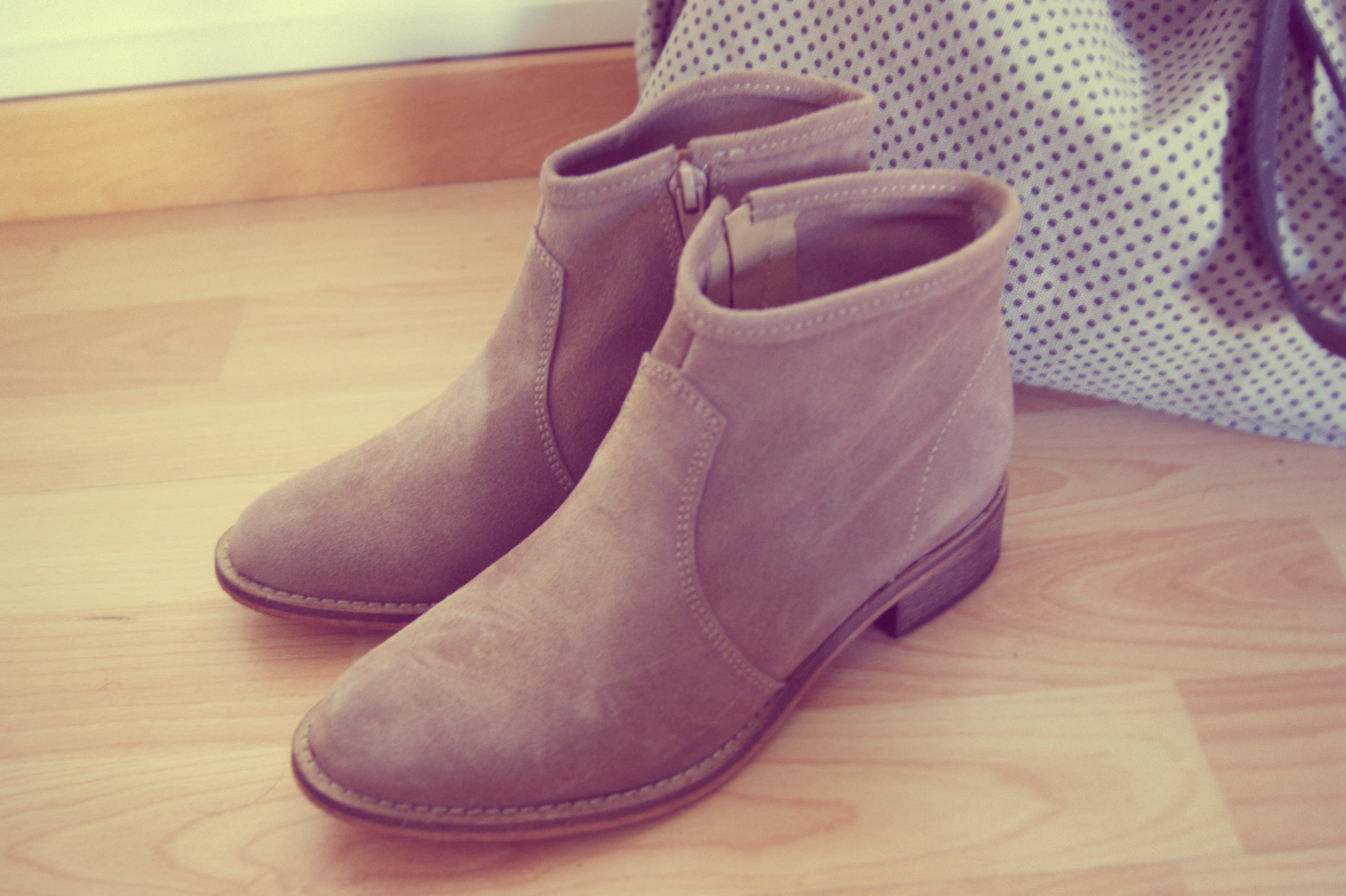 Tout d’abord, sur conseil de ma copine Emelie, j’ai craqué pour une paire de Betty London. Elle m’avait dit que c’était plutôt une marque sympa, avec de chouettes modèles. Eh bien, je confirme car j’ai décidé de craquer sur cette jolie paire de low-boots, dont la couleur se situe entre le rose poudré et le beige. Hâte de les porter, sûrement avec une jupe ou une robe car j’ai un peu de mal avec un jean slim (m’enfin, c’est que je dis maintenant…)
