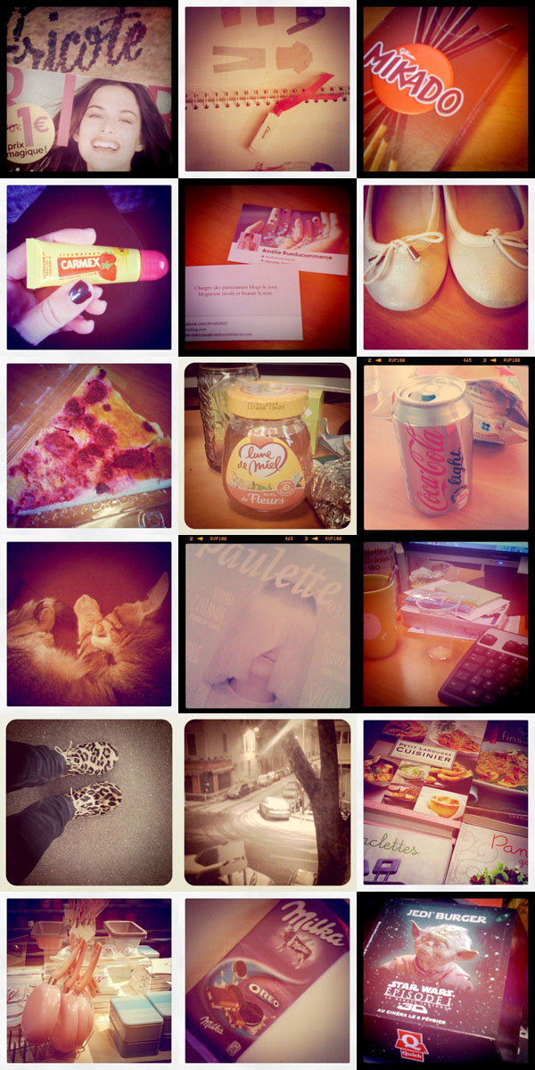 <3 J'aime beaucoup ce principe de présenter des photos de différents instants. Ca donne une jolie mosaïque ! Malheureusement je ne suis qu'au Samsung galaxy S ;-( donc pas d'instagram !