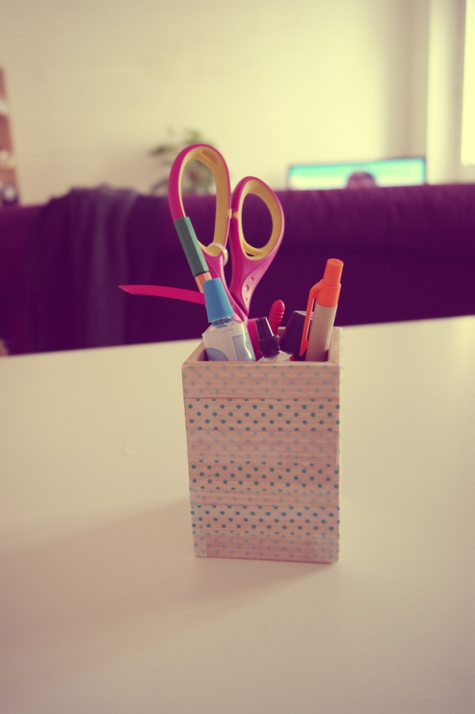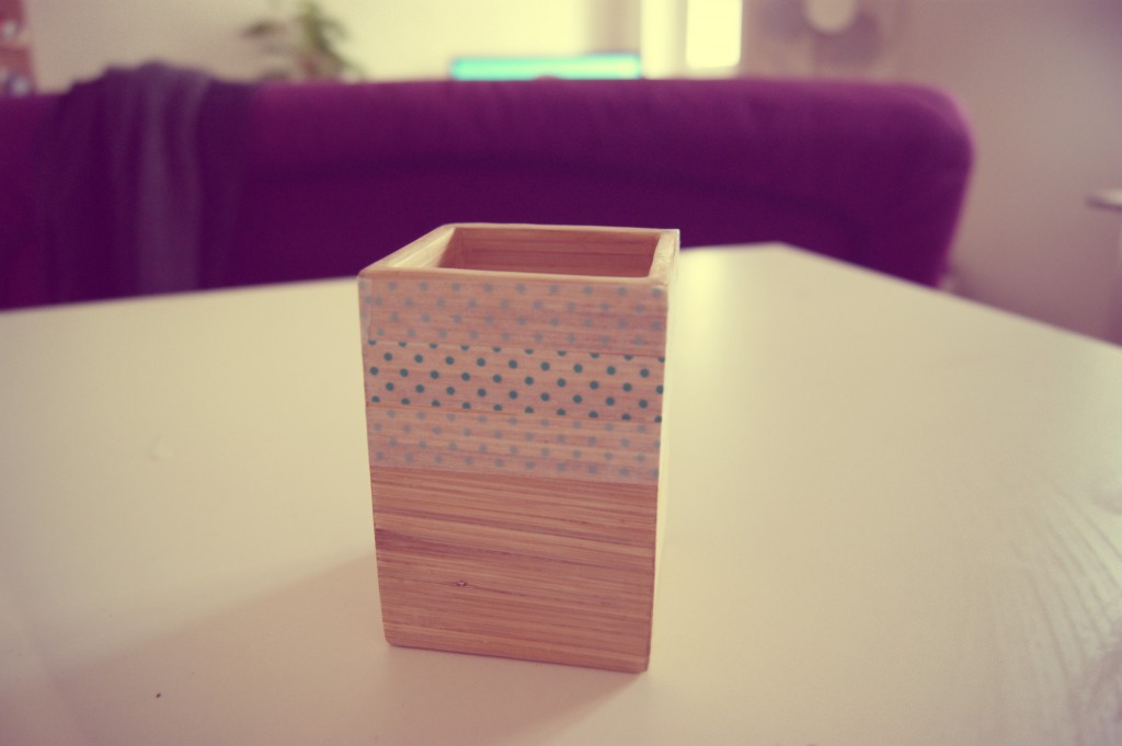 3) C’est fini ! Vous pouvez bien évidemment procéder comme pour le pot à crayon et alterner plusieurs bandes, mais je trouve que juste une bande discrète rend vraiment bien :)
