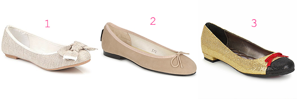 1. Ballerines nude – Best Mountain (30€ ♥) – 2. Ballerines effet peau de pêche – French Sole (124€ ♥) – 3. Ballerines bicolores – Café Noir (75€ ♥)
