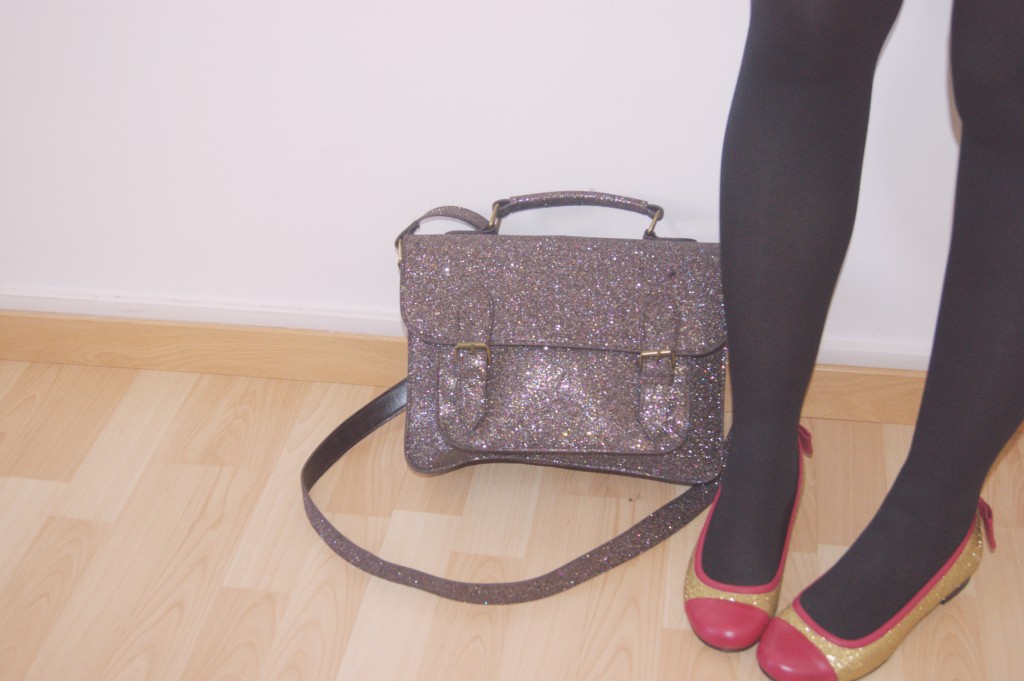 j’adore la forme de ta robe! et le sac cartable pailleté est sublime!