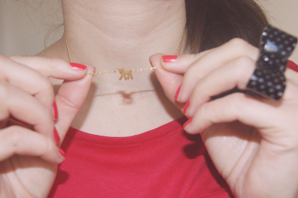 Perso je craque surtout pour tes accessoires !! J’adoooore le collier Bambi et la bague noeud à pois !!!