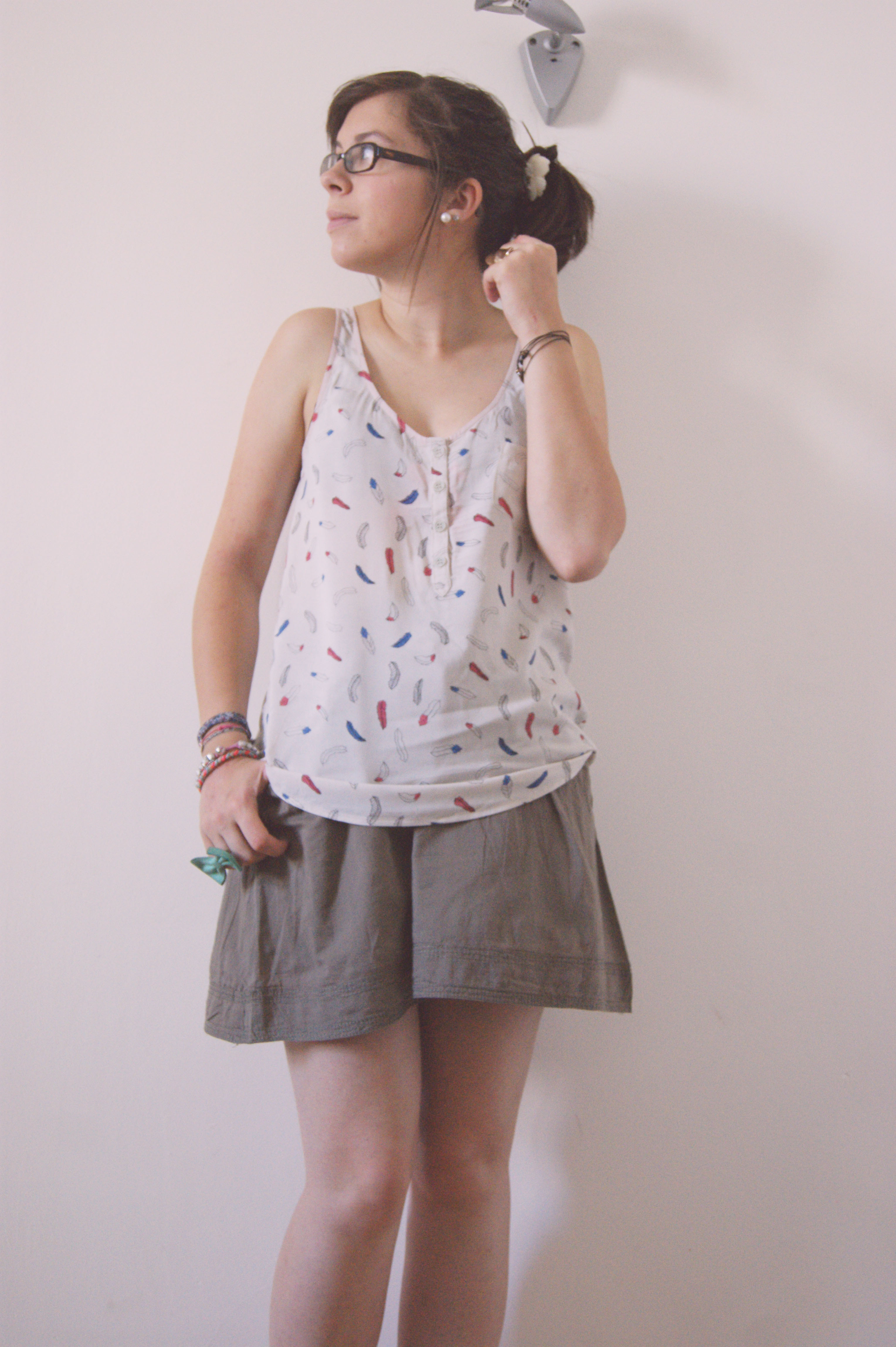 C’est le cas de cette jupe kaki, dénichée chez Camaïeu pour… 14.95€ ! Un prix digne d’H&M, pour une jupe agréable à porter, surtout en ce moment où l’on meurt de chaud dans le Sud ! Légère, bien coupée, je pense qu’elle va m’accompagner pas mal cet été :) On y associe un top qui ne colle pas trouvé chez le Suédois pour moins de 15€ et le tour est joué ;)
