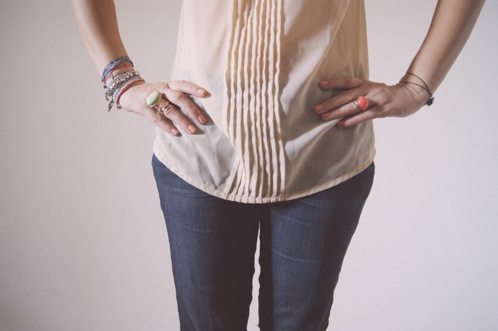 Mardi, après une séance de démaquillage des ongles grâce à mes cotons Demak’Up, je suis passée d’une teinte flashy à un vernis nude, associé à un top dans les mêmes tons !