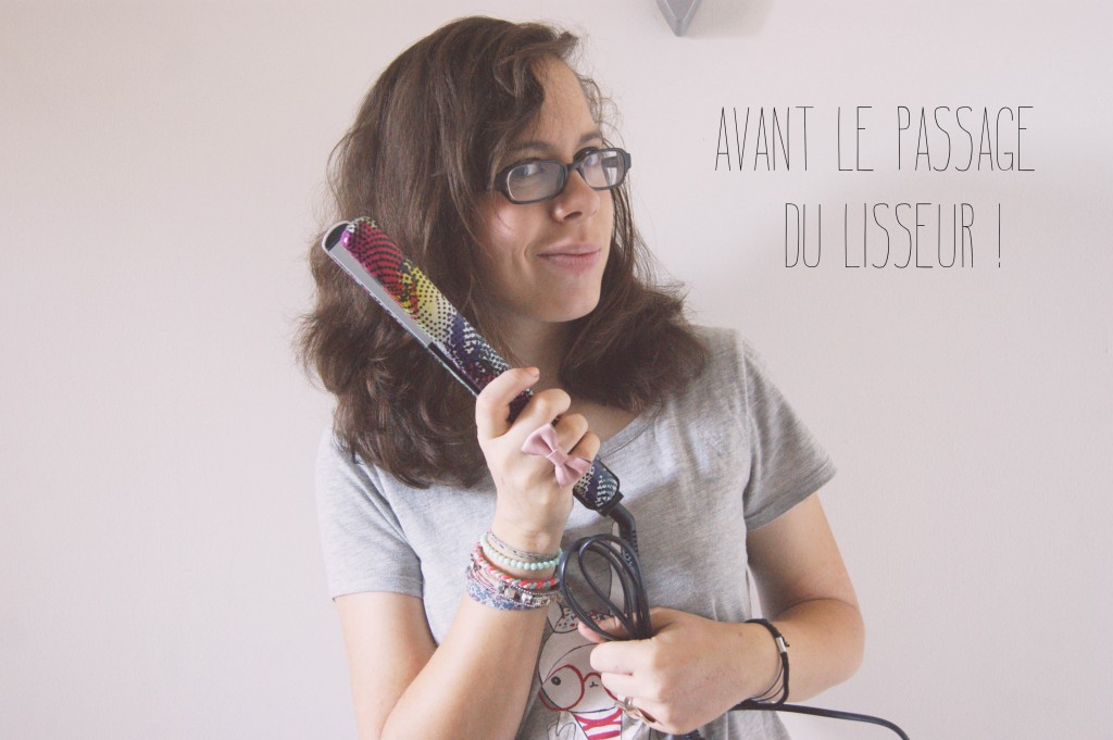Avant le passage du lisseur, état des cheveux : de la masse, des boucles, des ondulations.. Bref, ça part un peu dans tous les sens, et c’est difficilement portable ^^