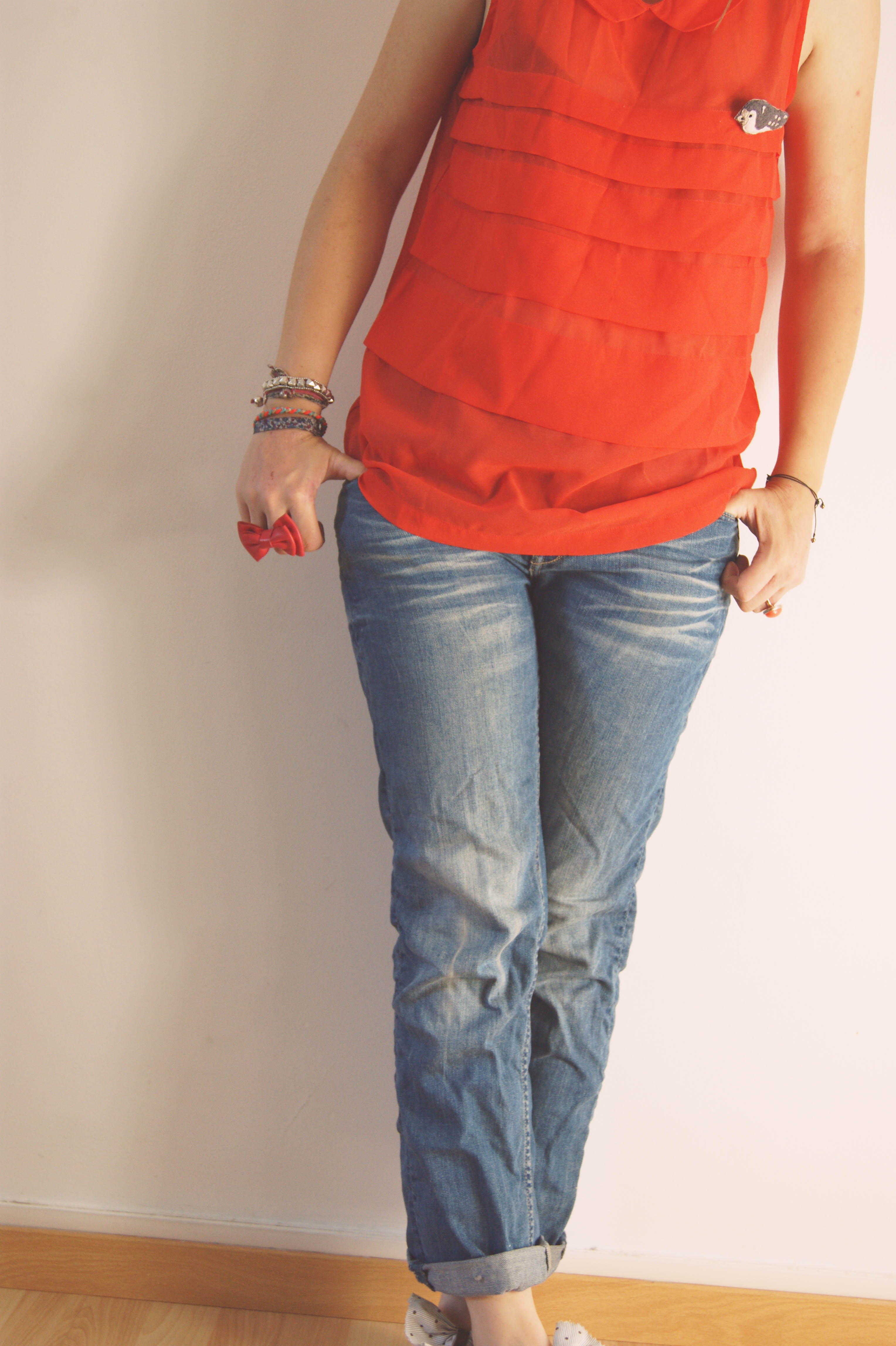 Un boyfriend jean, c’est un jean un peu large mais qui reste quand même assez féminin, puisqu’il est moins large qu’un jean type baggy ;)