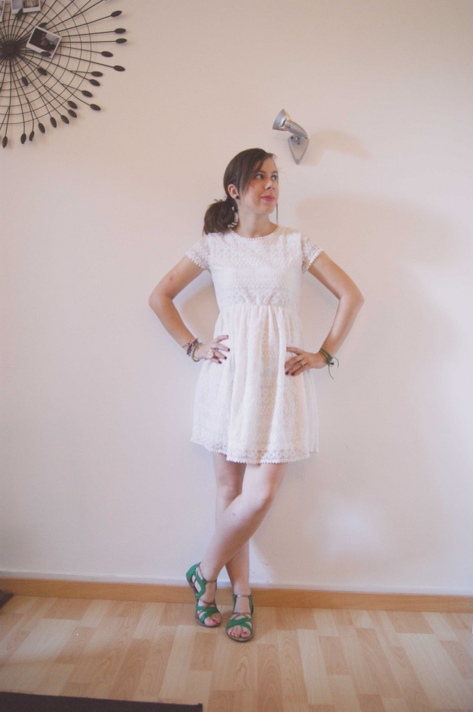 Super jolie cette robe dentelle! Qui rend bien avec les sandales vertes!