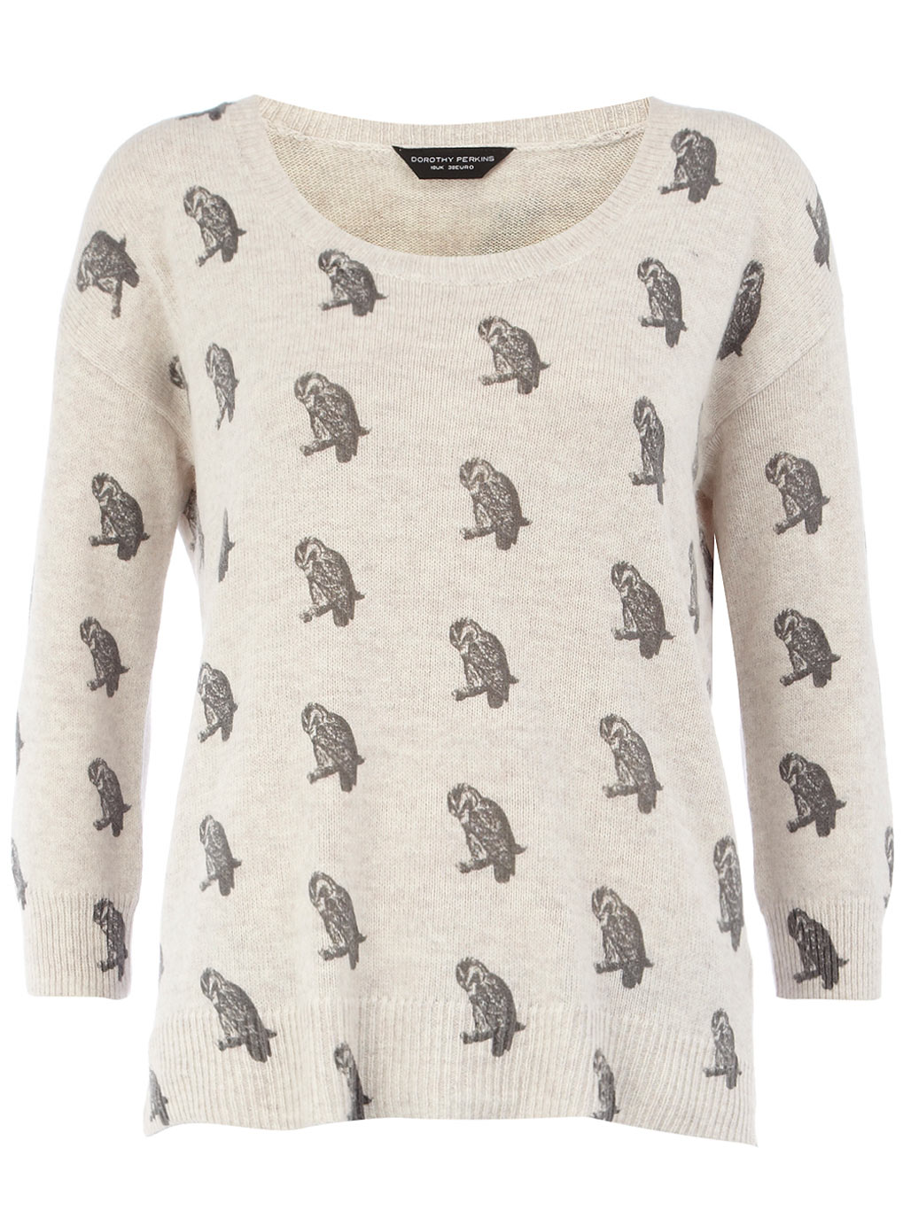 1. Elles me font sacrément de l’œil les robes patineuses et les robes peplum de Dorothy Perkins. Mais là où tu m’as achevé, c’est avec le pull imprimé chouettes ! Il est trop beau !