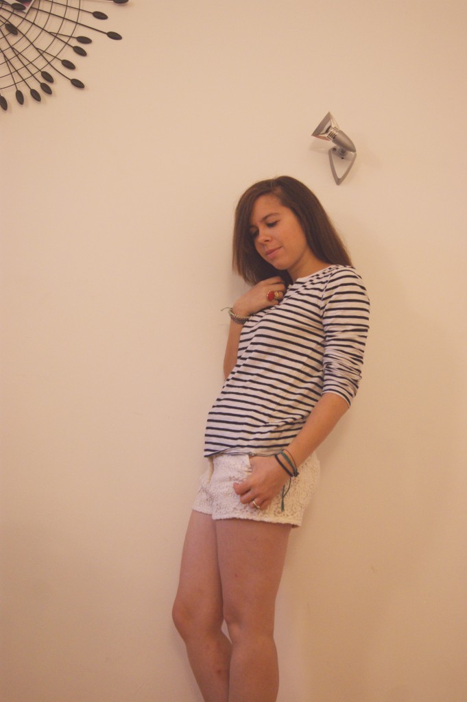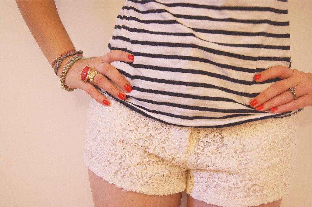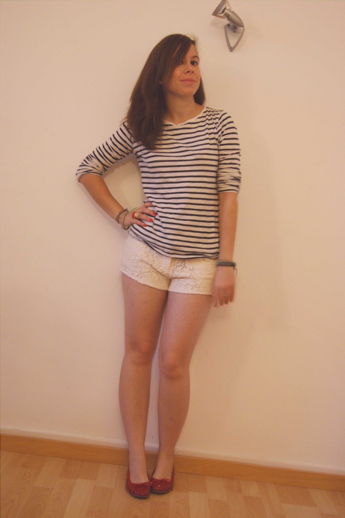 oh ton short est trop mimi!! je suis fan de cette association dentelle et marinière!! =) très jolie look ma belle! j’adore!