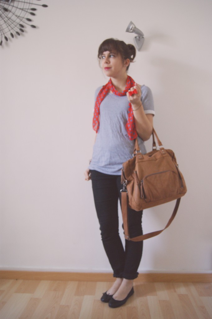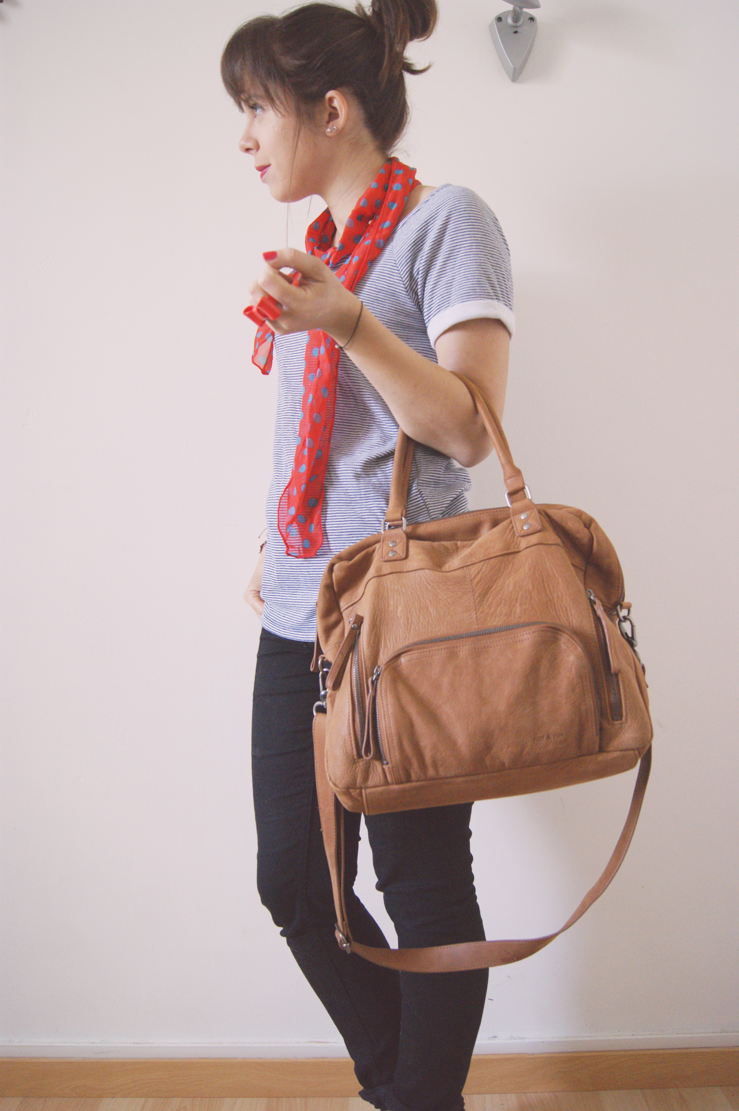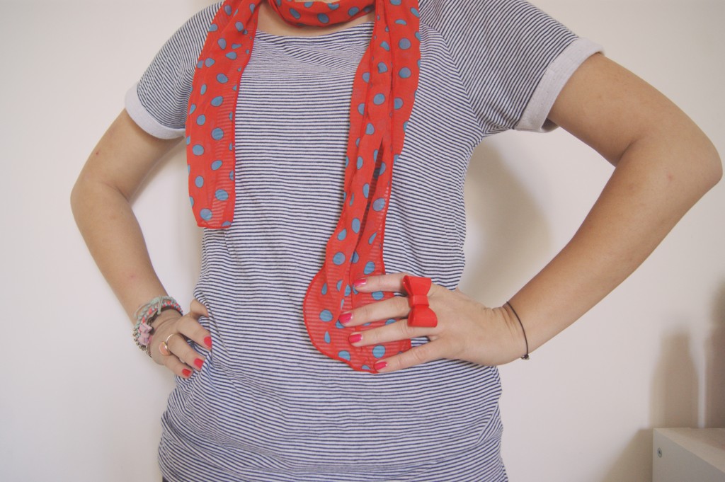 J’adore ta tenue, je n’aurais peut être pas associé ce t-shirt avec ce foulard, mais le rendu est jolie quand même :). Je suis complétement fan de ton sac Nat&Nin ! Et bonne continuation pour ton blog il est génial, je le suis de très pres !