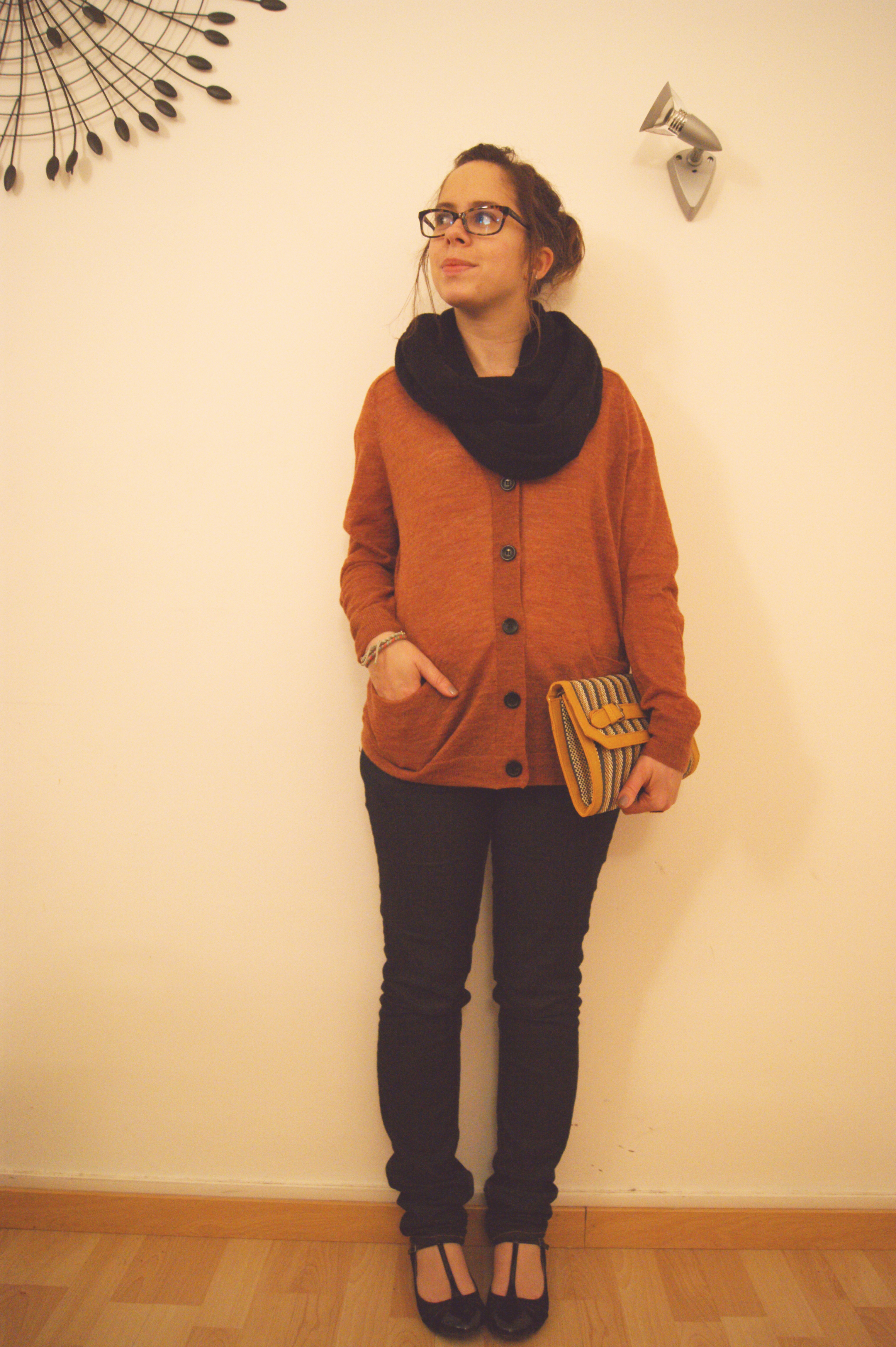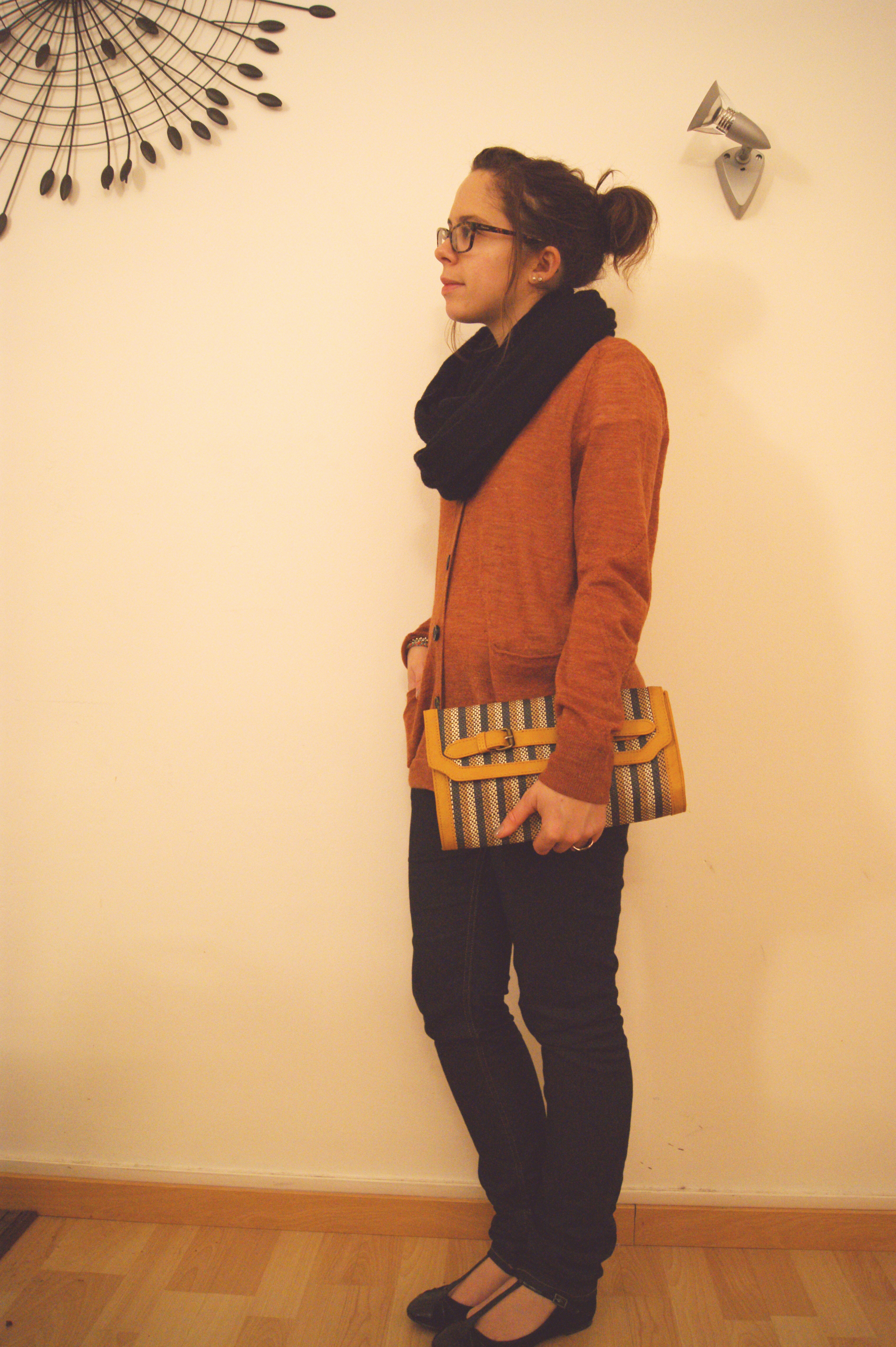 Il y a quelques semaines, j’ai passée une commande American Vintage sur Vente Privée. Parmi mon butin, ce joli cardigan couleur rouille en alpaga, une grande première pour moi ! C’est une couleur un peu difficile à porter, située quelque part entre le orange et le marron dans ce cas… Mais il tient tellement chaud que c’est un réel plaisir de le porter ! Résultat, pour aller au travail, je l’ai associé à mon jean slim (MA pièce fétiche) et à une paire de ballerines, et le tour est joué !