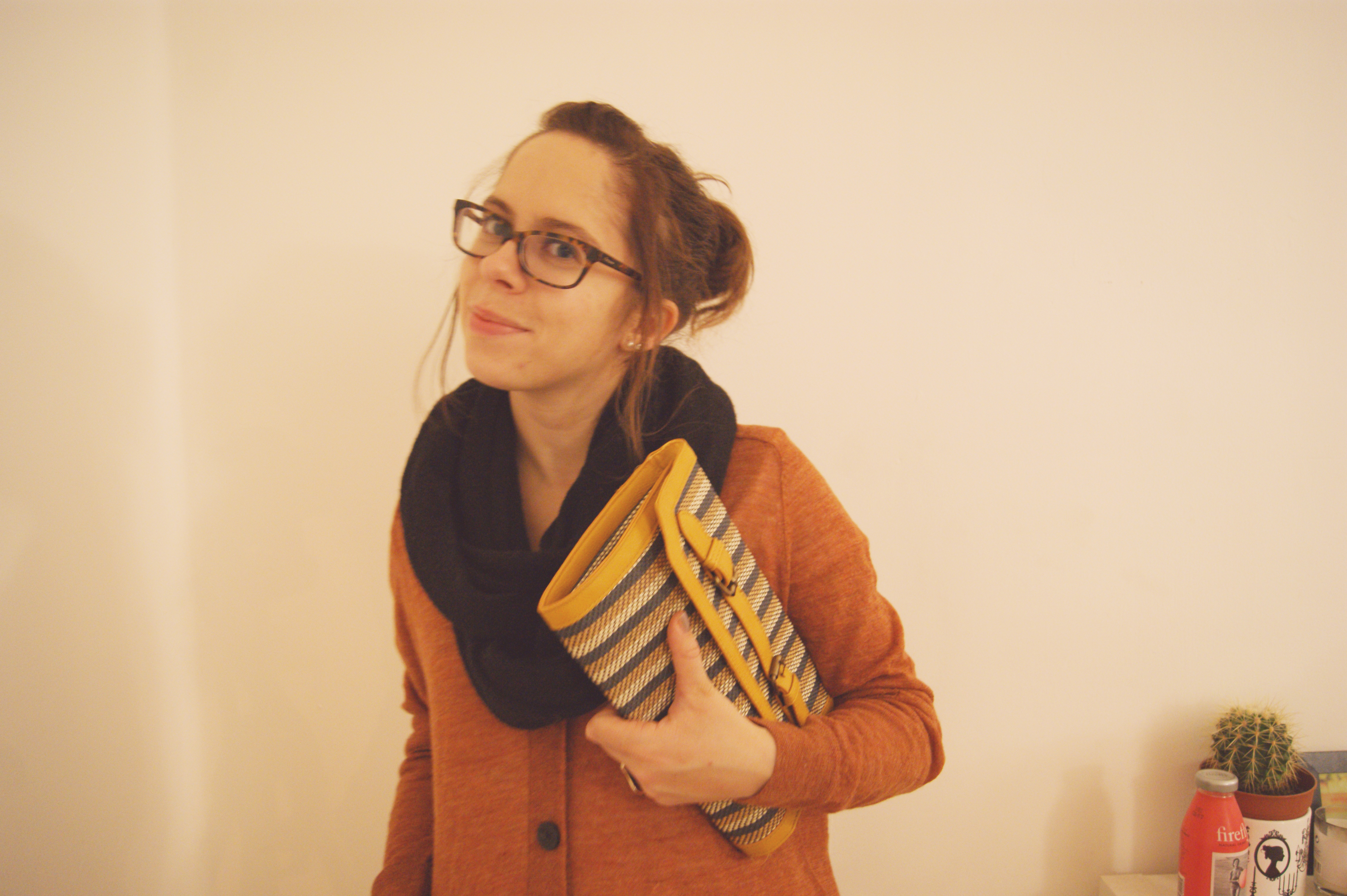 Pour rester dans ces teintes automnales, j’ai pris ma pochette Moa issue de la nouvelle collection, avec sa jolie couleur moutarde… D’ailleurs, ça me donne bien envie de m’acheter un gilet dans ces teintes… Je sens qu’un petit peu de shopping s’impose ! ^^