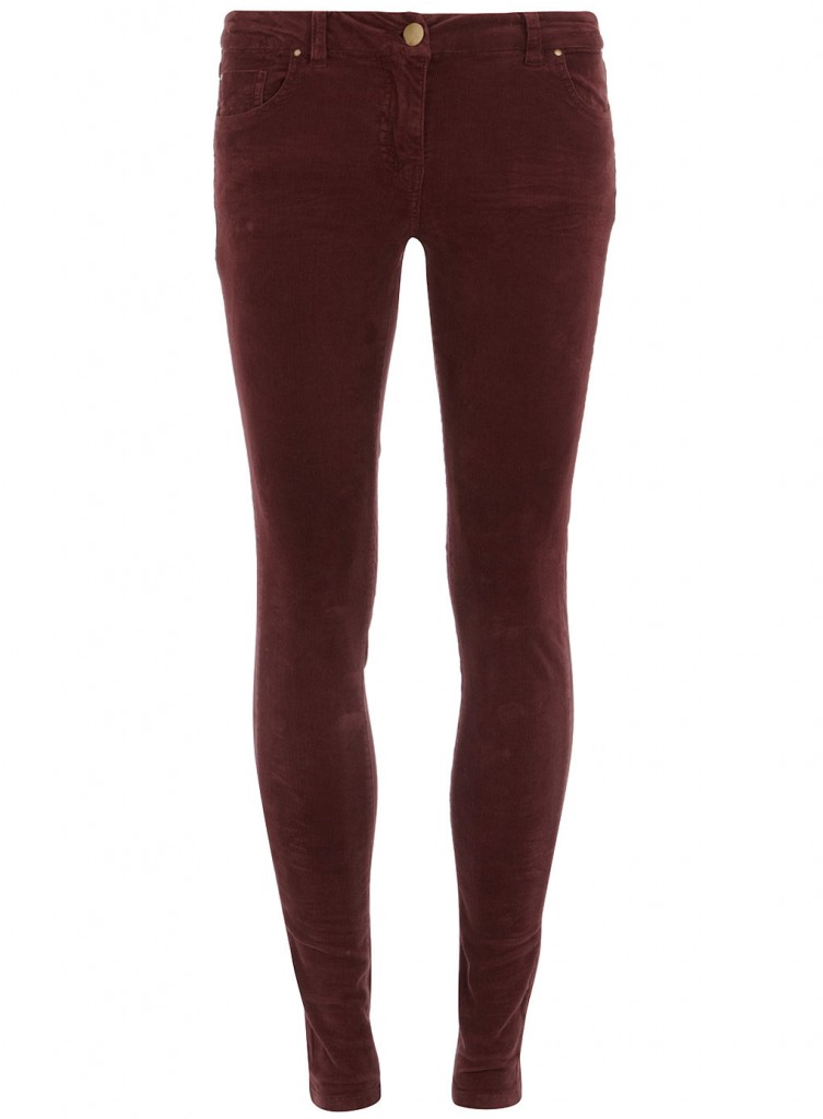 Jean slim en velours côtelé bordeaux – 39€ (♥)