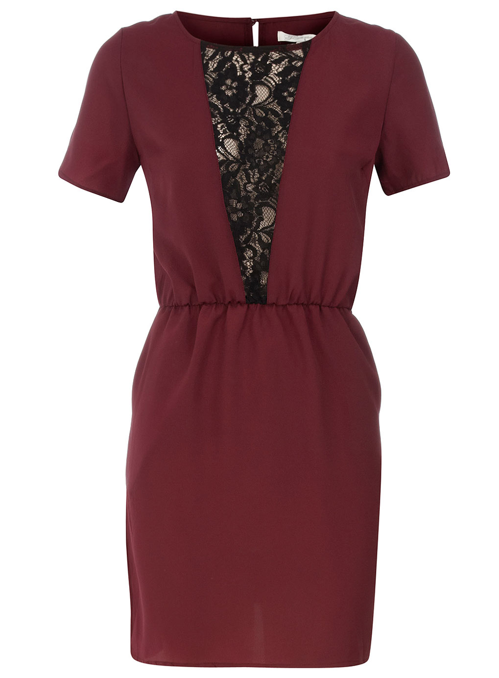 Robe bordeaux avec empiècement en dentelle – 32€ (♥)