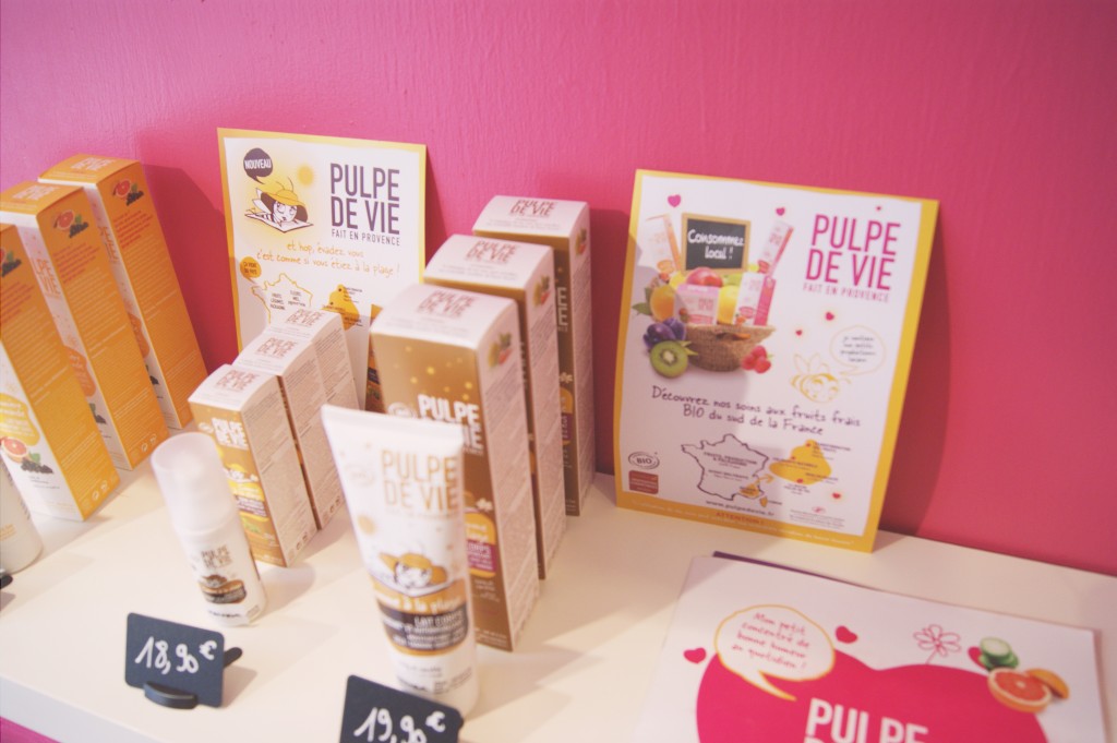 Dans une atmosphère très girly et accueillante, nous avons donc retrouvé les marques chouchous de Magali (pas celle du Mag à Lire ^^), qui sont pour la plupart originaires et basées dans le Sud de la France. C’est ainsi que l’on peut y acheter notamment les produits d’Ange du Sud, de Pulpe de Vie, de Fées en Provence, Edited By, Naturado, Miss Ferling ou bien encore Bébilou (ce qui va intéresser mes lectrices mamans ou futures mamans !).