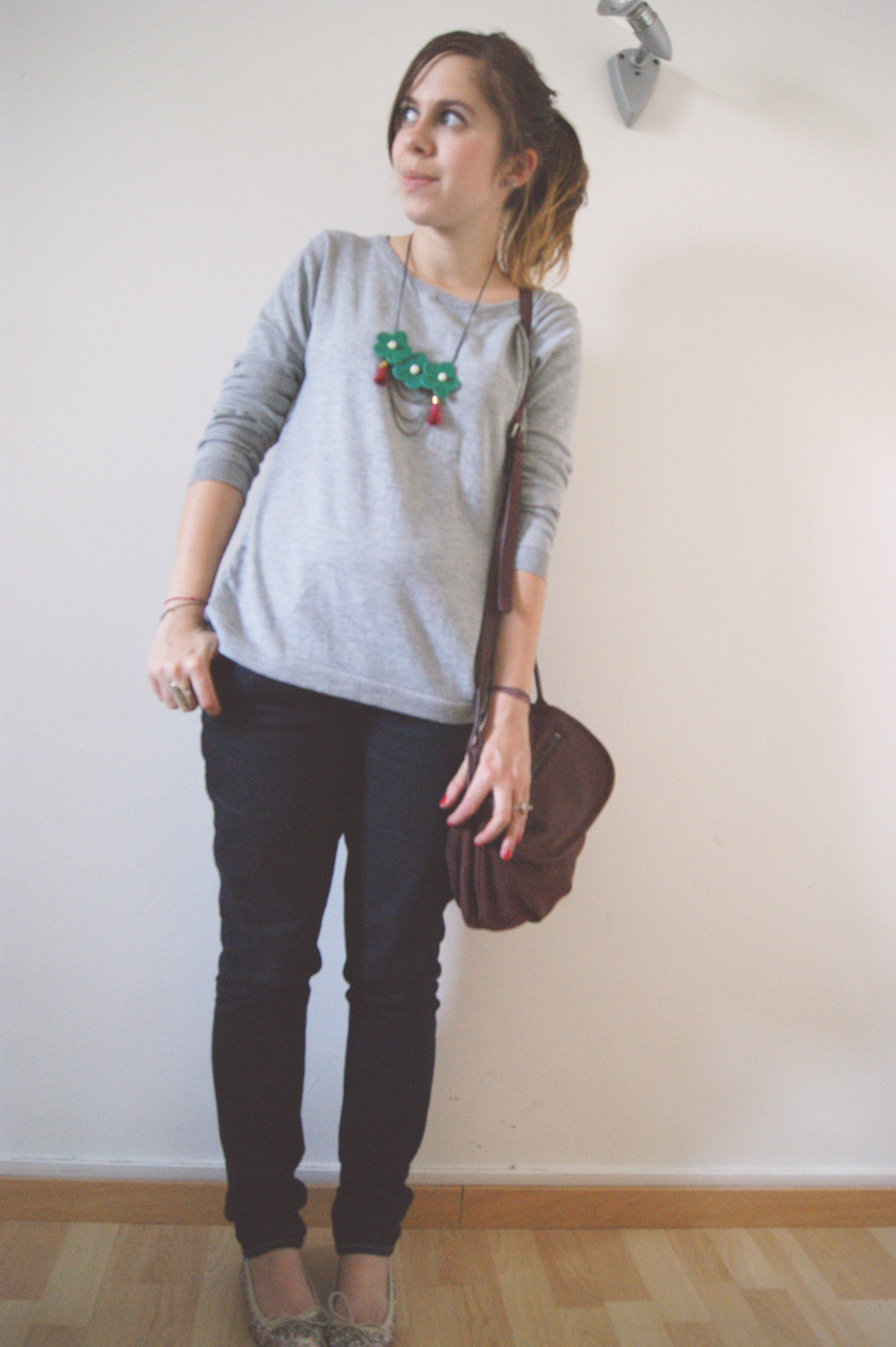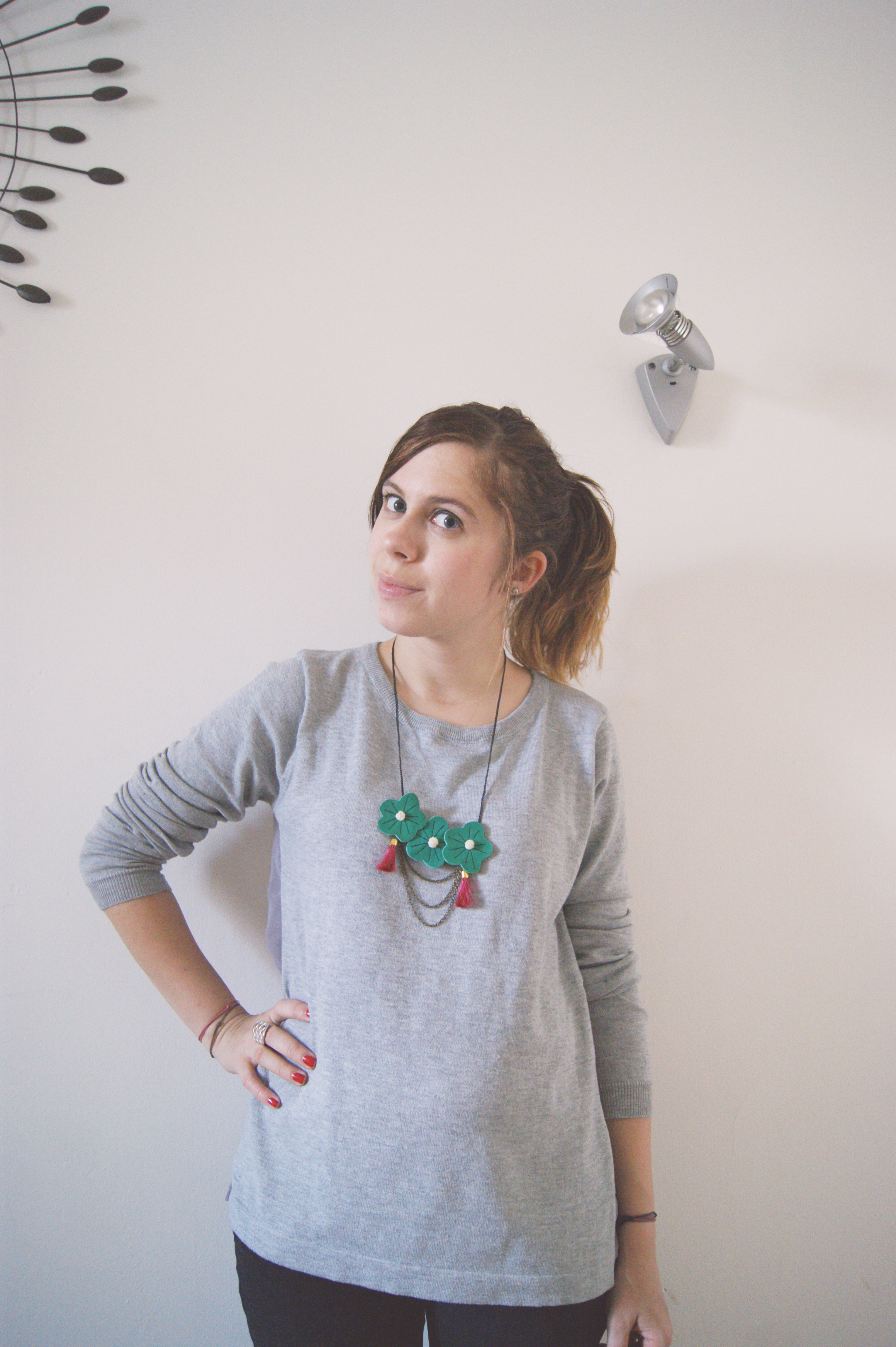 Vrament sympa le collier, personnellement je ne sais pas si j’aurais osé le pull, mais il te va très bien :)