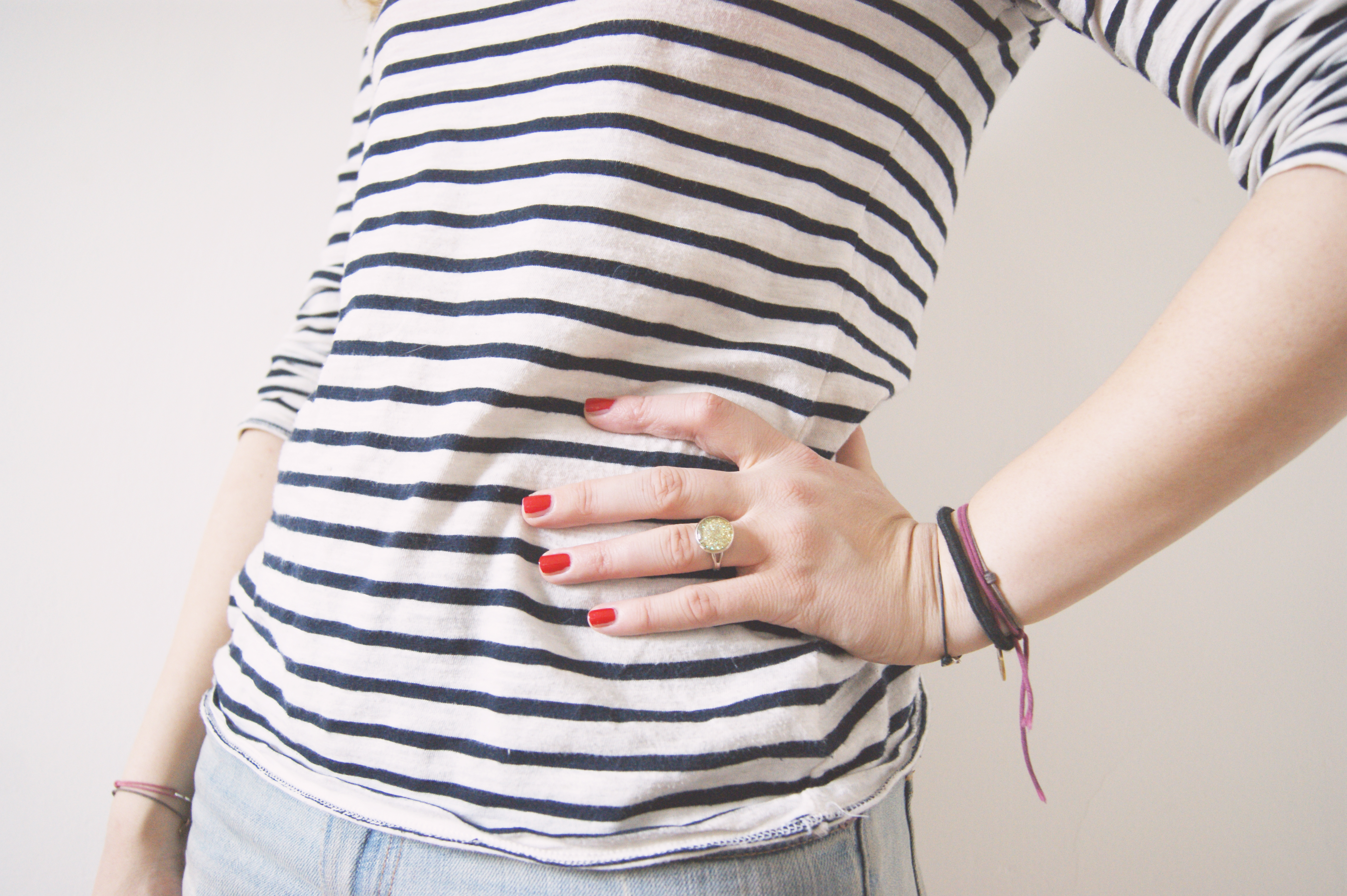 Hello, on en a jamais assez des looks « marinière » ! Elle a toujours son petit effet. et cette bague est juste trop belle, je l’ai vu sur ton Instagram je crois non ?