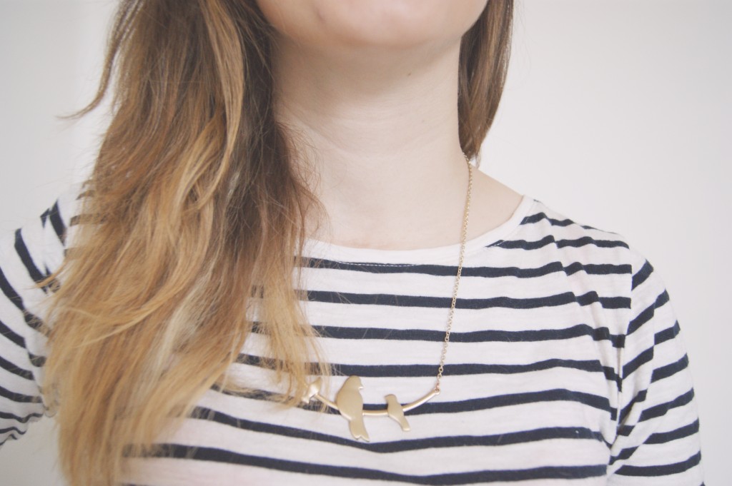 Etant moi-même accro aux marinières, je dit OUIIII ;-) J’aime aussi beaucoup ton collier, il est original et annonce le printemps !