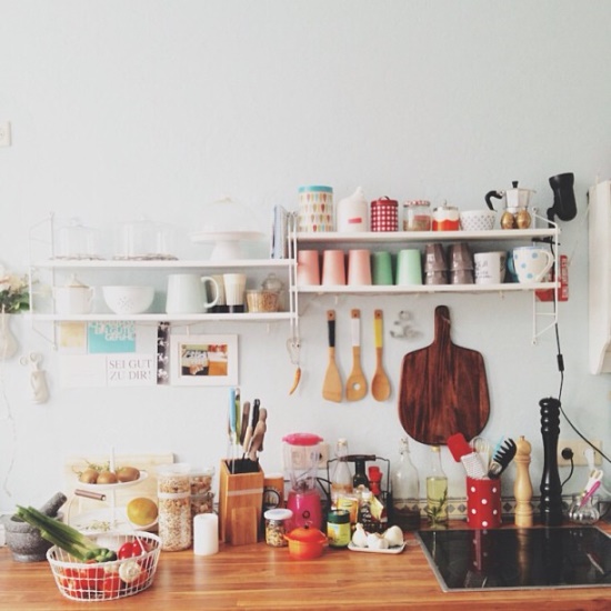 Le mur de la cuisine avec les étagères bien remplies, on en rêve toutes <3