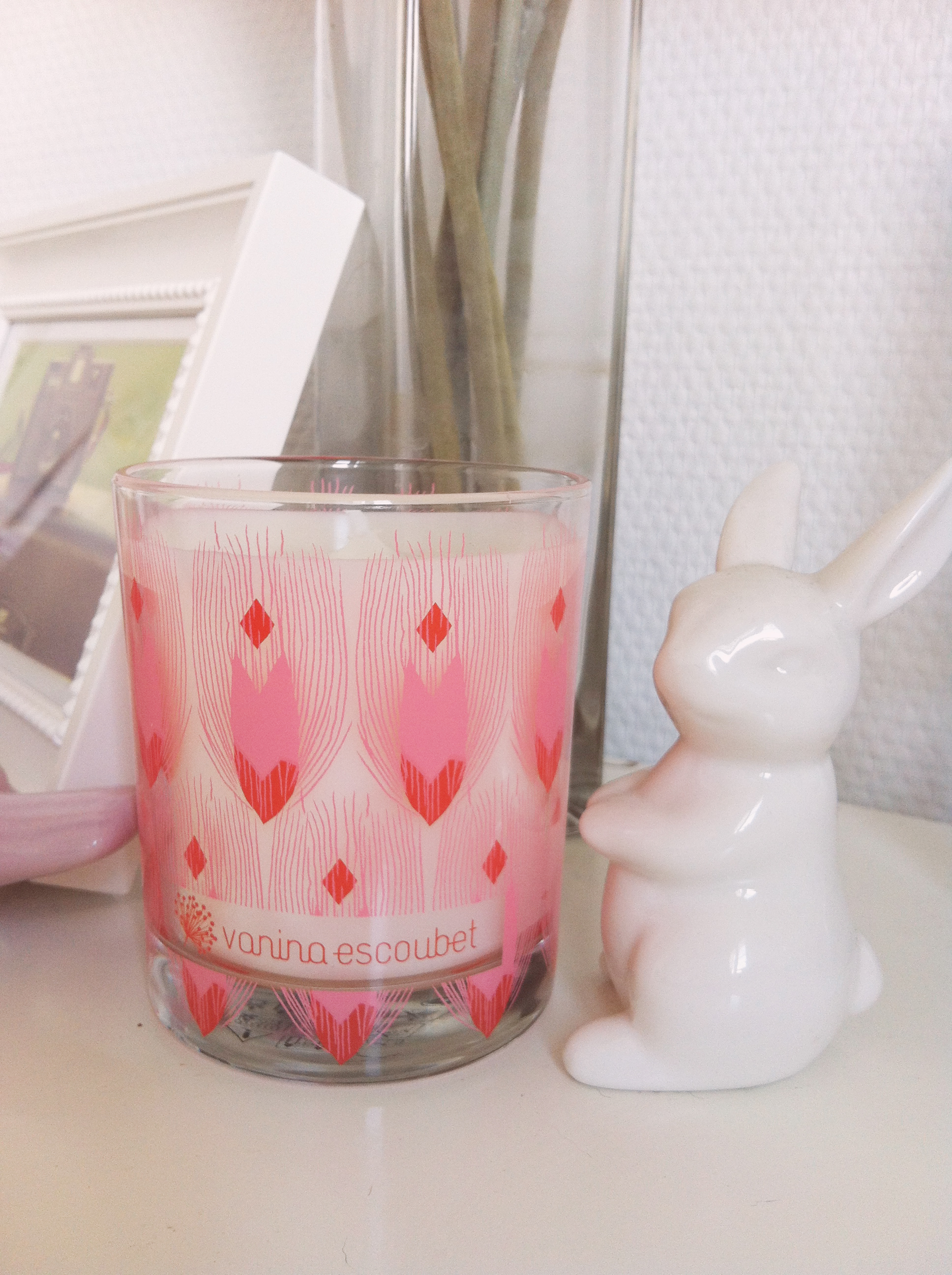 Comme vous l’avez compris, je suis une accro des bougies et une petite nouvelle est venue faire son apparition chez moi pendant le déménagement. Crée par Vanina Escoubet pour les 3 ans de sa boutique, cette jolie bougie au design très girly m’a tout de suite fait craquer ! Je ne l’ai pas encore allumée mais selon la créatrice, il doit s’en dégager une odeur de cuir floral épicé… J’ai hâte de découvrir cela, même si je n’aime jamais allumer les jolies bougies ! (bizarre, je sais).