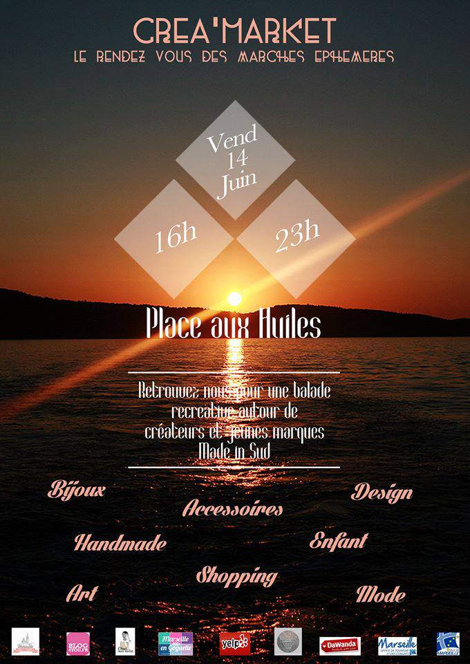Le Marseille Créa’Market, de 16h à 23h le vendredi 14 Juin sur le cours Estienne D’Orves 13001 Marseille (entrée libre).