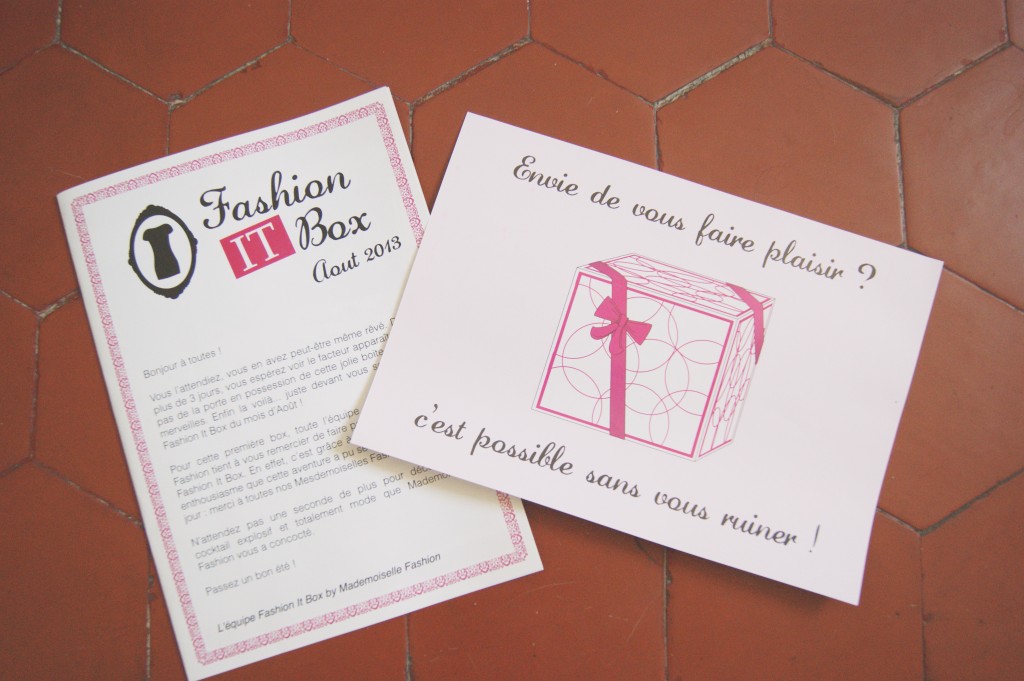 Bref, vous l’aurez compris, je ne suis pas vraiment emballée par cette Fashion It Box, que je trouve trop amateur. Comme si le site avait voulu surfer sur une tendance sans forcément prendre le temps de faire les choses bien. Peut être que certaines trouveront mon jugement trop sévère mais c’est vraiment le sentiment que j’ai eu en recevant la box. Et vous, vous vous laisseriez tout de même tenter ? :)
