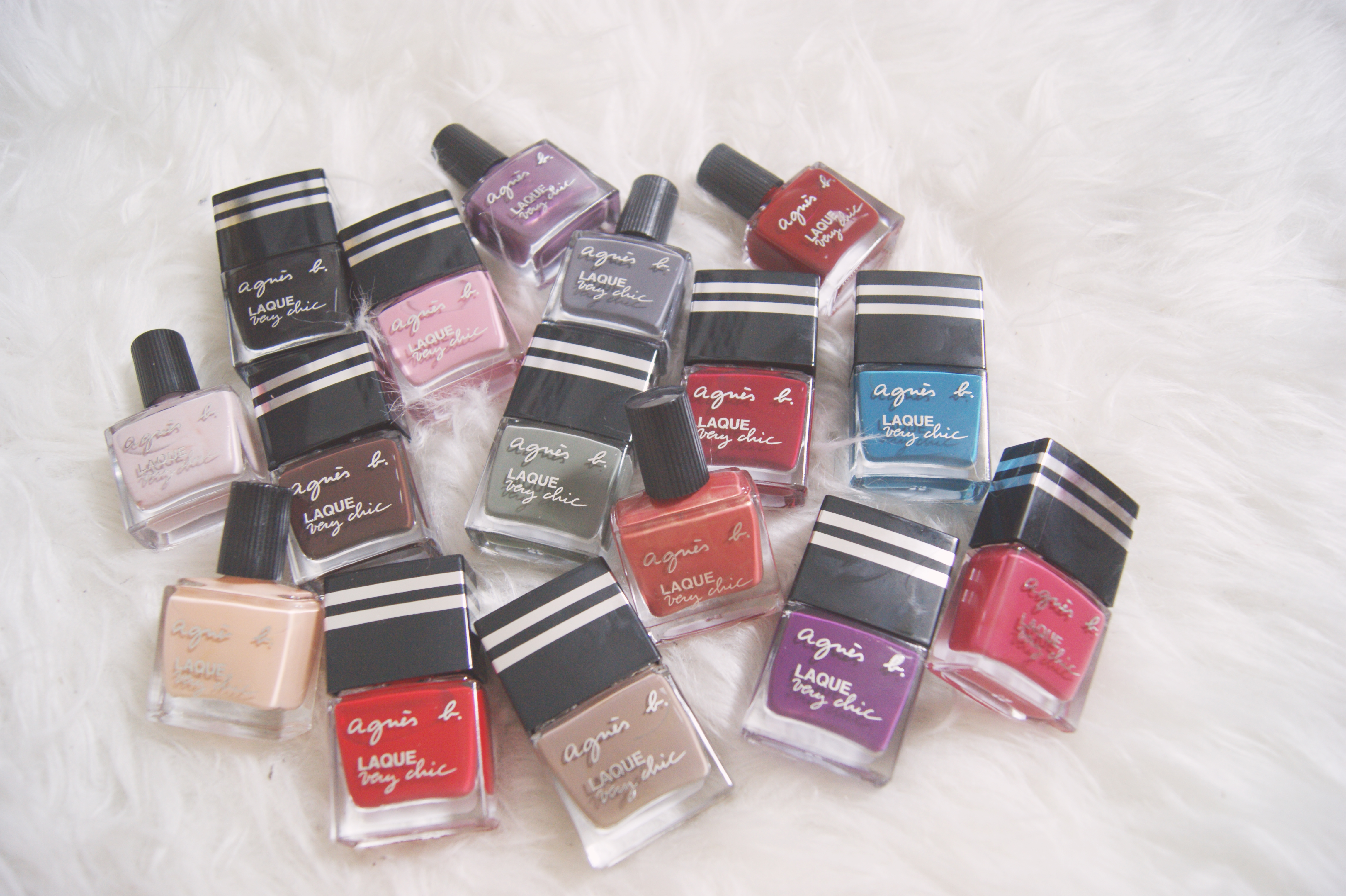 Les personnes qui me connaissent savent combien je suis accro au vernis à ongles, et si vous suivez le blog régulièrement, vous avez du remarquer que j’ai toujours les ongles vernis. Une (mauvaise ?) habitude que j’ai adoptée à l’adolescence, et qui depuis ne me quitte plus. Alors, il y a quelques jours, quand j’ai reçu dans ma boite aux lettres un colis contenant les 16 teintes de la collection de vernis d’Agnès B. « Laque Very Chic », ce fut un peu Noël dans ma boite aux lettres ! :)