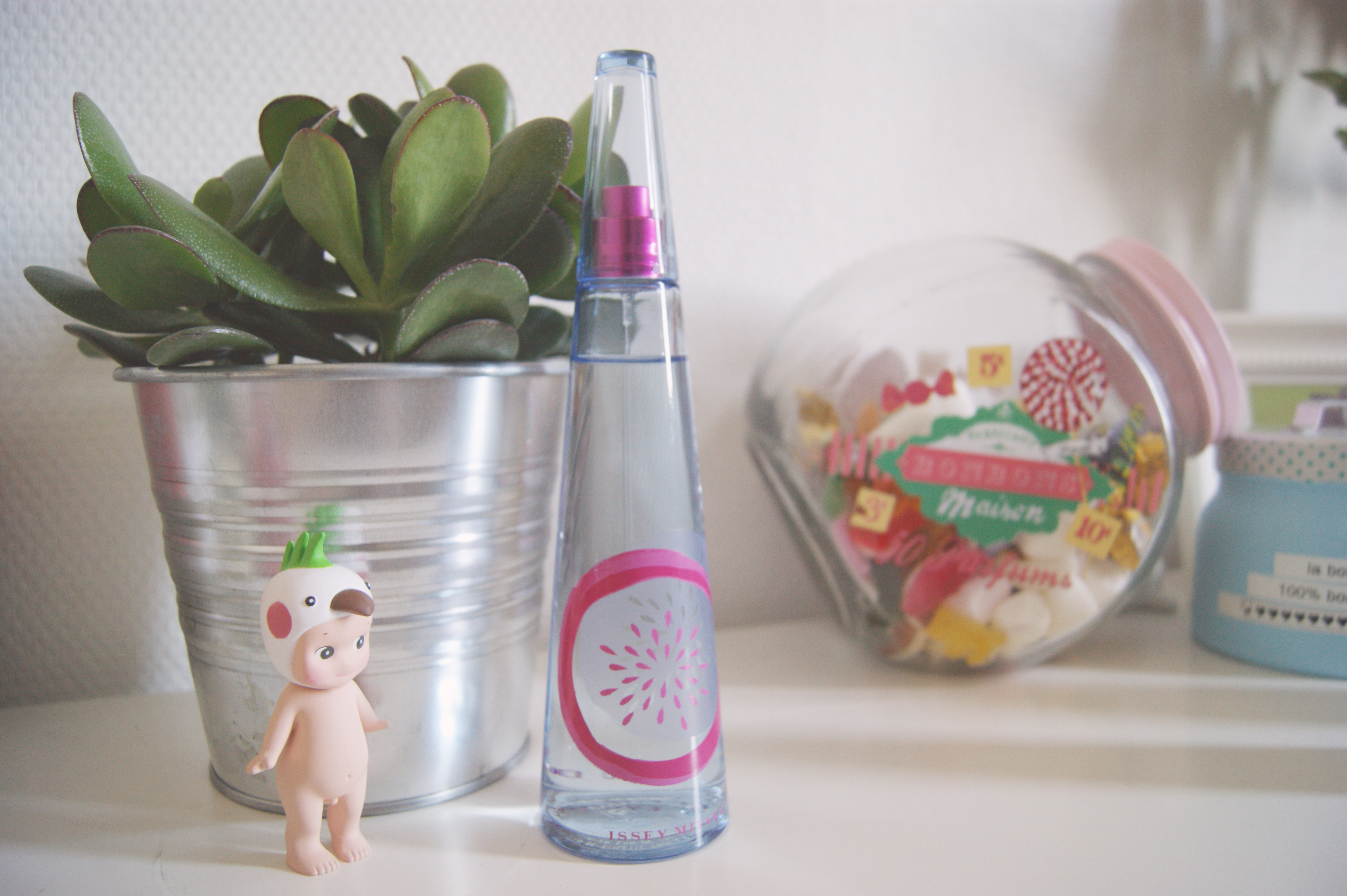 Enfin, depuis que je l’ai reçu cet été, j’ai complètement craqué pour l’édition summer de la célèbre Eau d’Issey d’Issey Miyake. Son odeur est très légère, fruitée et on a pas besoin d’en mettre non plus beaucoup pour être parfumée ! Il fait partie de mes 3 chouchous que j’ai porté énormément cet été, avec Daisy de Marc Jacobs et Frivole de Fragonard.