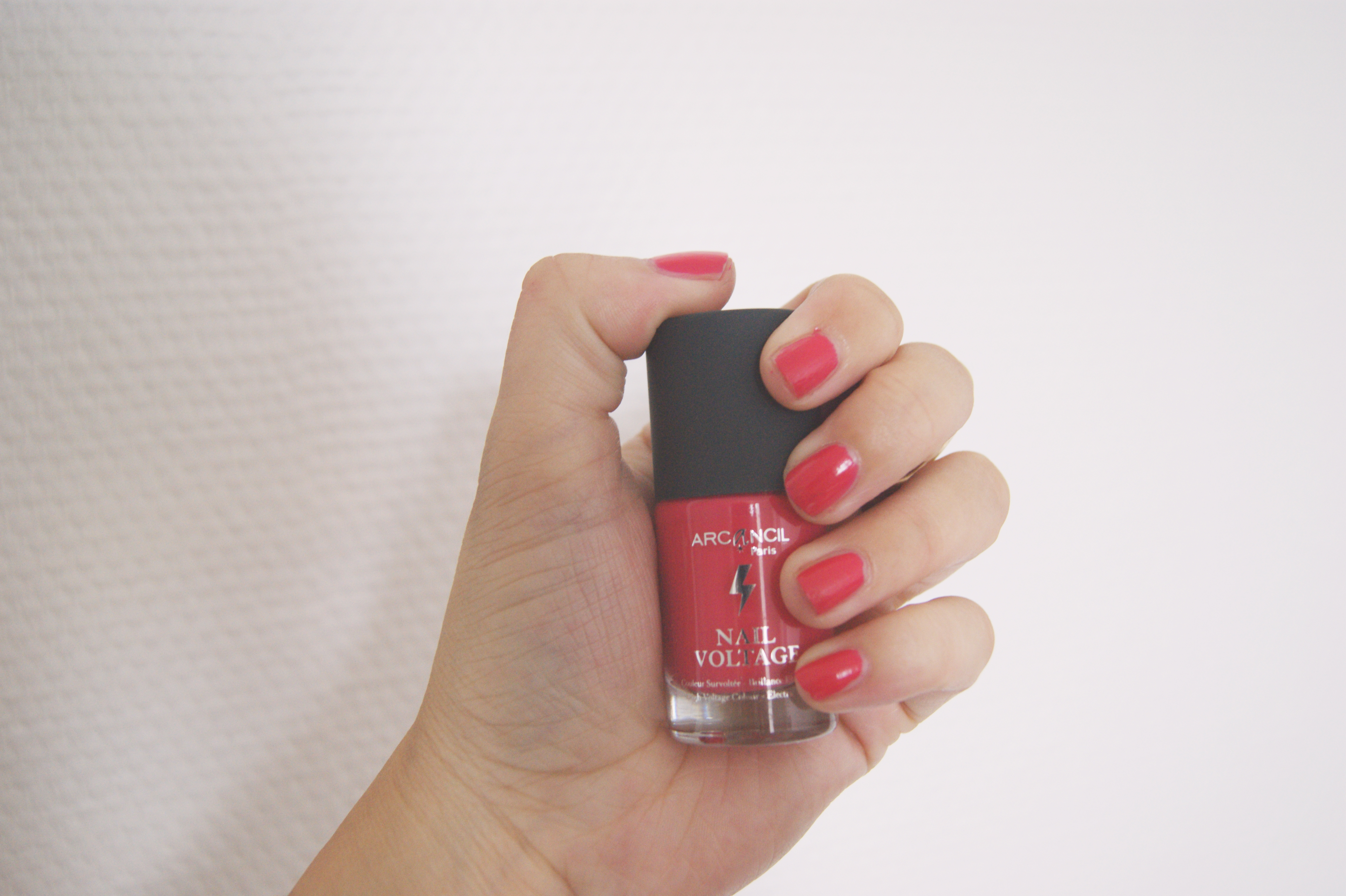 Avis : Ce n’est pas la première fois que j’utilise un des vernis « Nail Voltage » de la marque Arcancil, et je suis toujours aussi satisfaite ! En effet, les vernis tiennent facilement 4 jours sans bouger (si on met une base et un top coat, bien évidemment) et sont faciles à utiliser. Le pinceau est assez large pour ne pas avoir à repasser plusieurs fois sur l’ongle, mais il ne l’est pas autant que les pinceaux Essie ou OPI malheureusement. Quand au séchage, il est assez rapide, ce qui est un bon point pour moi qui ne suis pas toujours patiente ^^