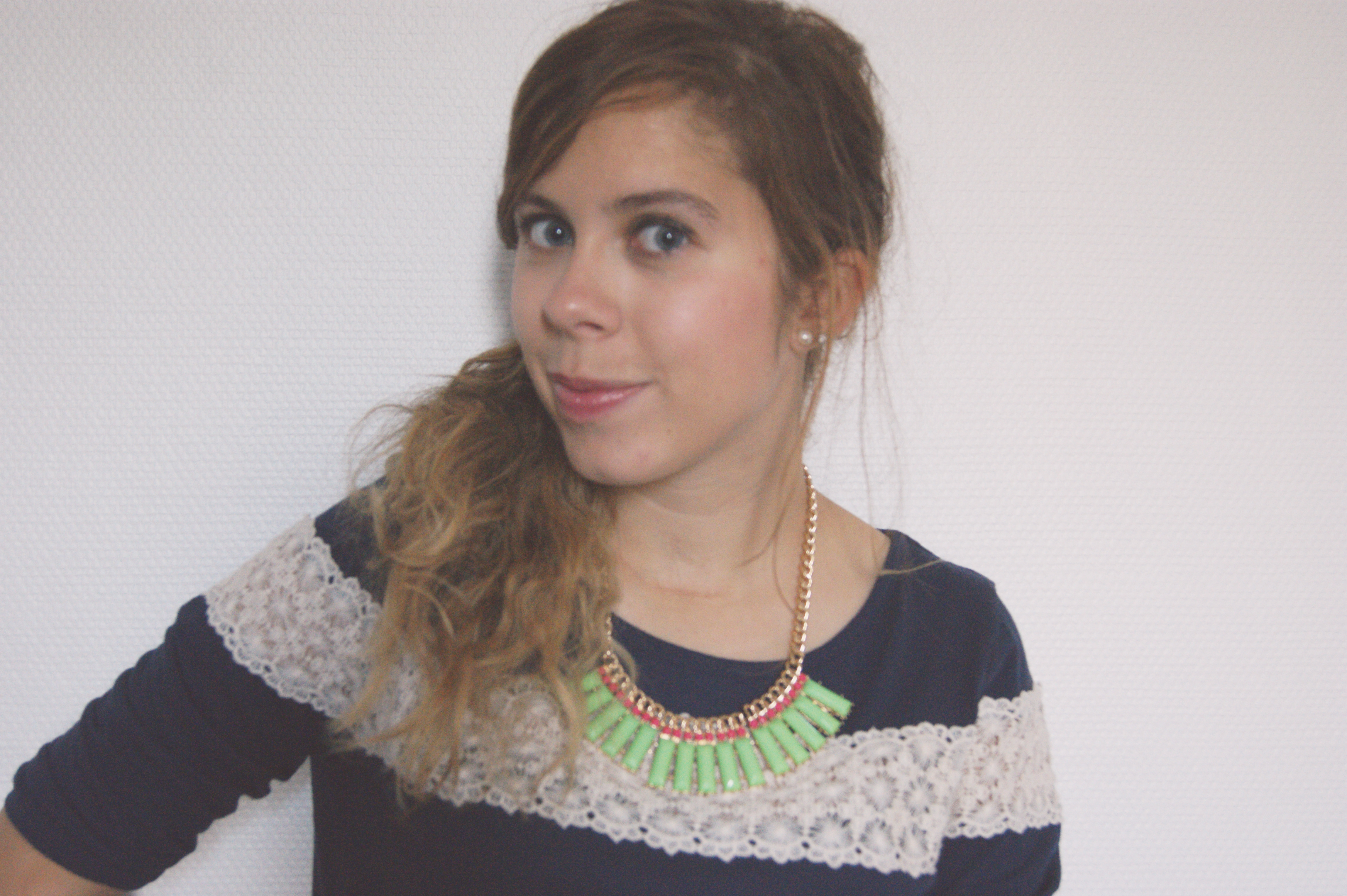 La dentelle moi j aime beaucoup je reconnais que tous les jours c est pas facile a porter mais de temps en temps ça apporte une belle touche girly et ton mix de ton est super :-)
