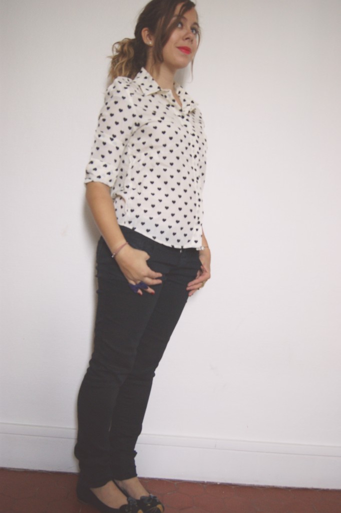 Il est vraiment top ce chemisier ! Je sens que moi aussi je vais succomber aux imprimés coeur (après une période rayures et pois également ^^) !
